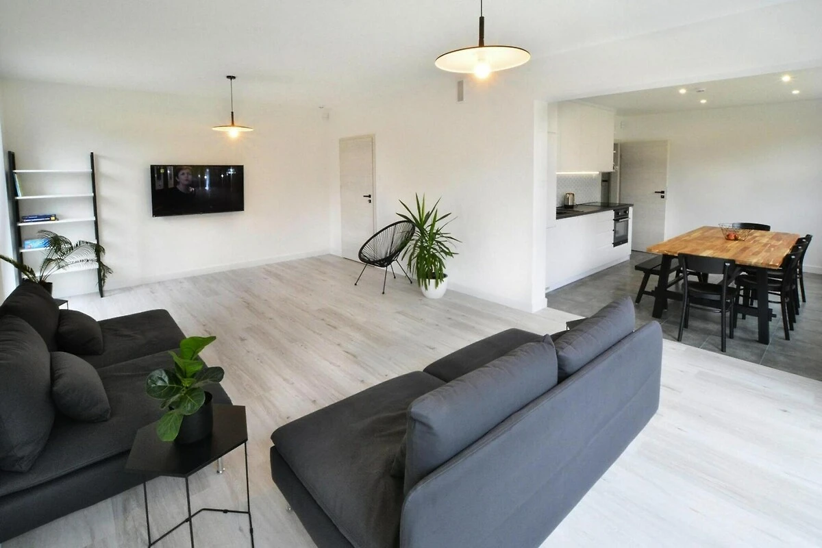 Parterre: (offene Küche(Kochplatte(4 Kochplatten, Induktion), Wasserkocher, Toaster, Kaffeemaschine, Backofen, Mikrowelle, Spülmaschine, Kühl-/Gefrierkombination), Wohn/Esszimmer(TV(Flatscreen, Satellit, Deutsch Fernsehsender), Esstisch), Schlafzimmer(Doppelbett(160 x 200 cm), TV(Flatscreen, Satellit, Deutsch Fernsehsender)), Badezimmer(Dusche, Waschbecken, Toilette, Waschmaschine), Toilette(Waschbecken, Toilette))
