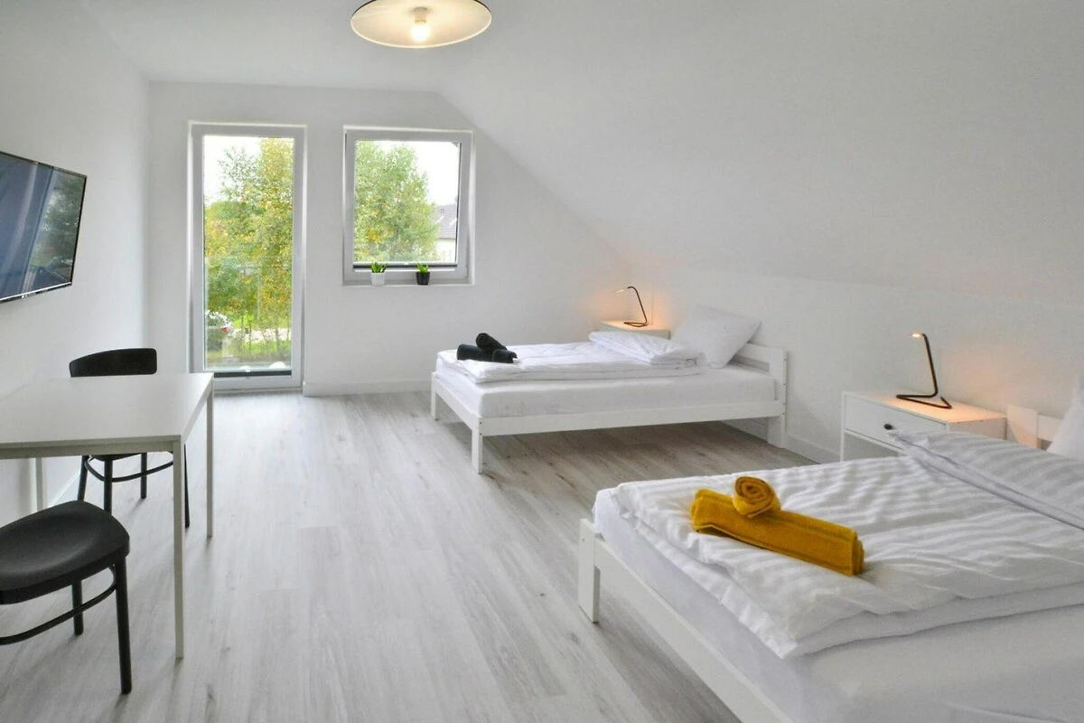 In der 1. Etage: (Schlafzimmer(Einzelbett(120 x 200 cm), Einzelbett(120 x 200 cm), TV(Flatscreen, Satellit, Deutsch Fernsehsender)), Schlafzimmer(Doppelbett(160 x 200 cm), TV(Flatscreen, Satellit, Deutsch Fernsehsender)), Schlafzimmer(Einzelbett(140 x 200 cm), Einzelbett(90 x 200 cm), TV(Flatscreen, Satellit, Deutsch Fernsehsender)), Schlafzimmer(Einzelbett(90 x 200 cm), Einzelbett(90 x 200 cm), TV(Flatscreen, Satellit, Deutsch Fernsehsender)), Badezimmer(Dusche, Waschbecken, Toilette, Föhn))