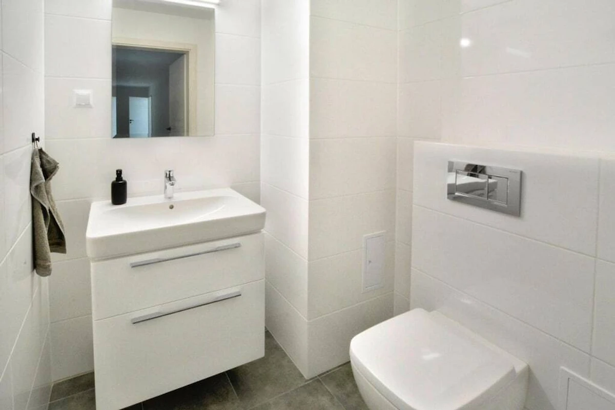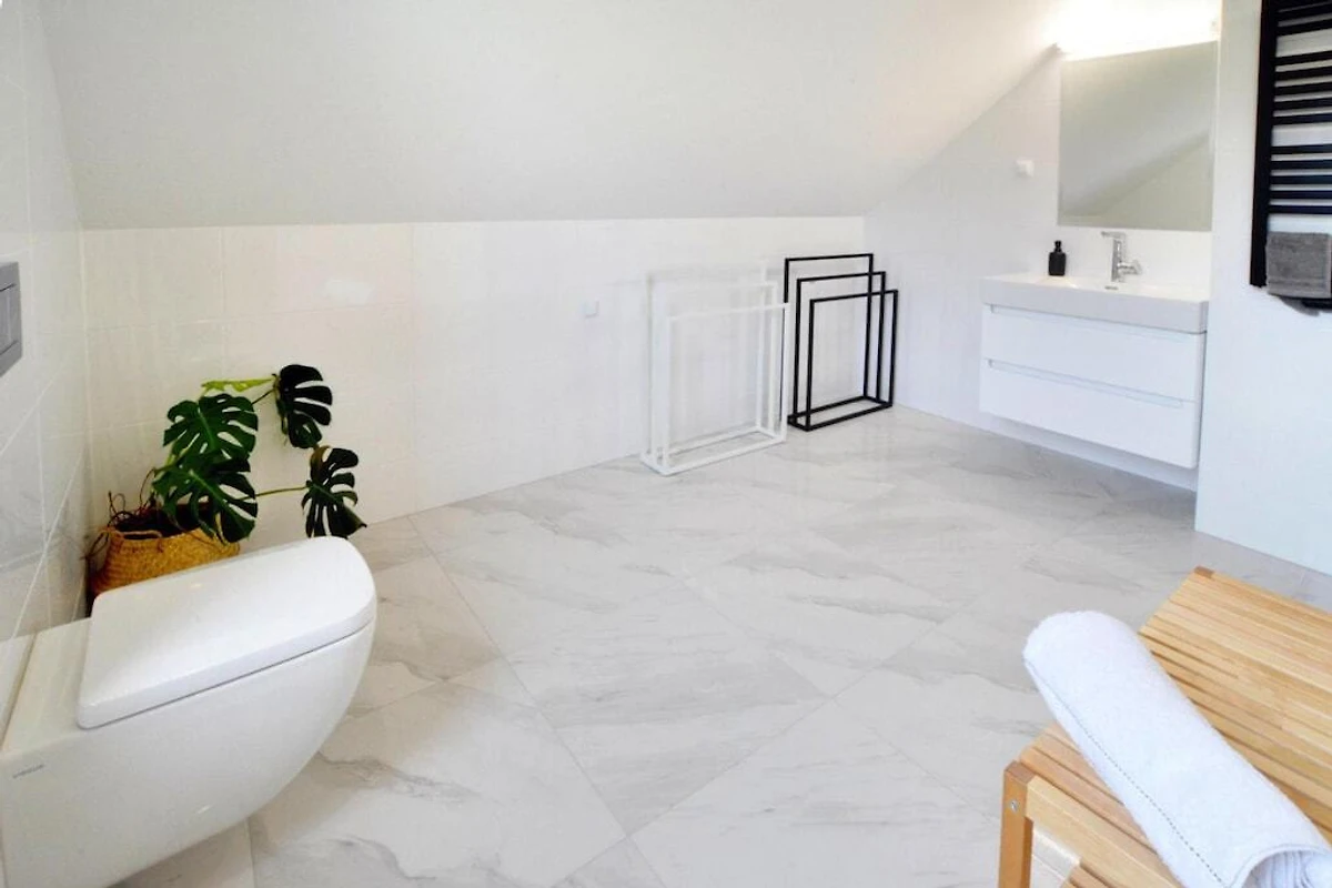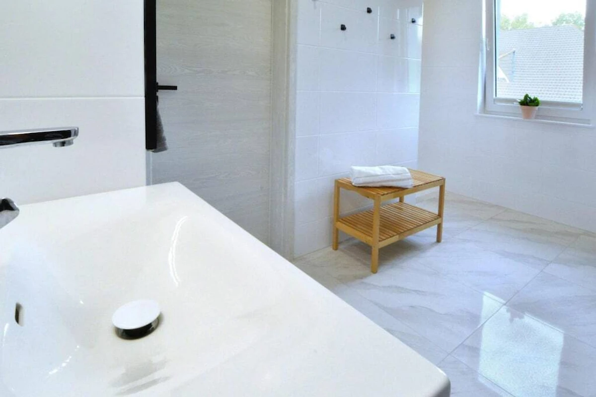 Parterre: (offene Küche(Kochplatte(4 Kochplatten, Induktion), Wasserkocher, Toaster, Kaffeemaschine, Backofen, Mikrowelle, Spülmaschine, Kühl-/Gefrierkombination), Wohn/Esszimmer(TV(Flatscreen, Satellit, Deutsch Fernsehsender), Esstisch), Schlafzimmer(Doppelbett(160 x 200 cm), TV(Flatscreen, Satellit, Deutsch Fernsehsender)), Badezimmer(Dusche, Waschbecken, Toilette, Waschmaschine), Toilette(Waschbecken, Toilette))