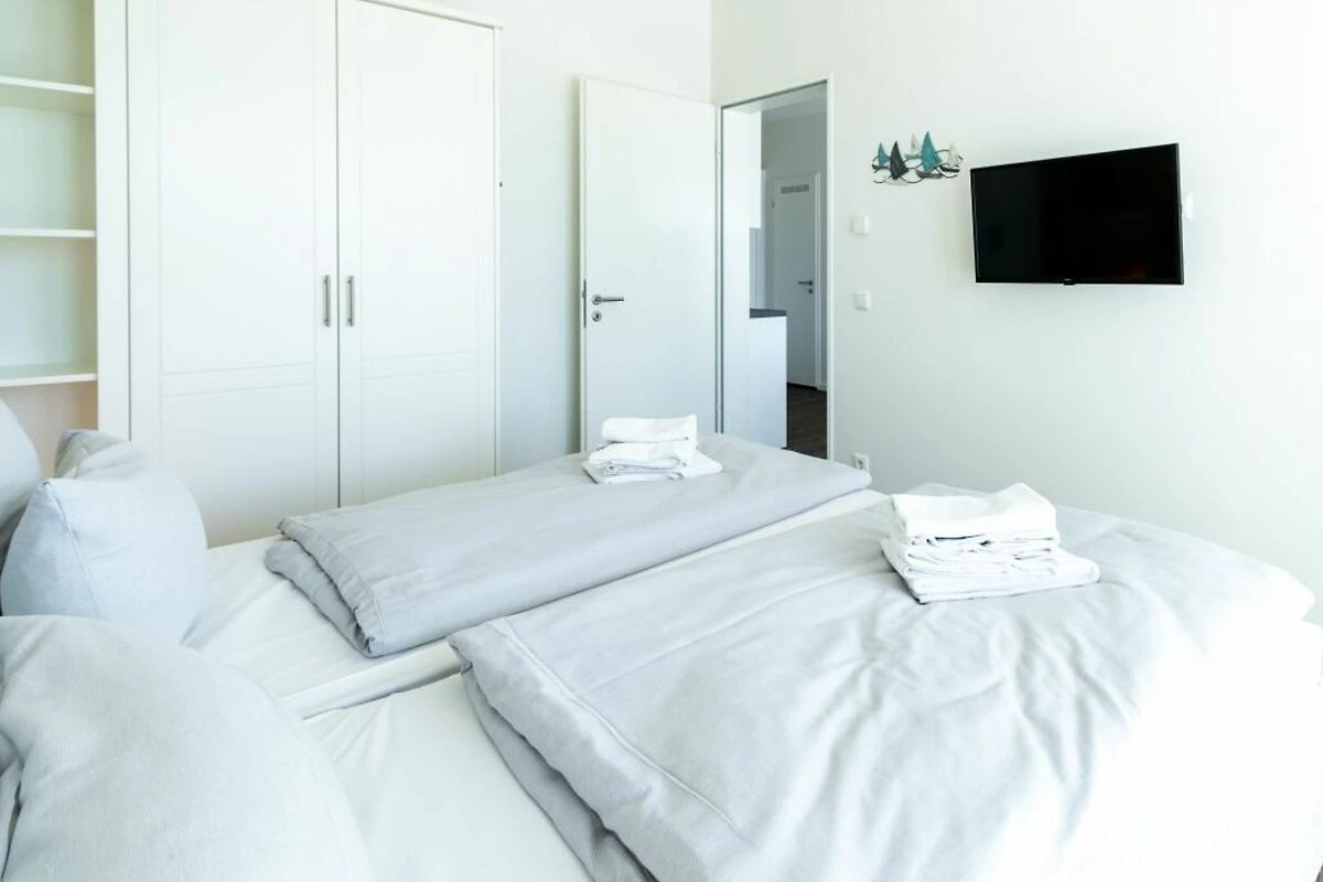 Nach einem erlebnisreichen Urlaubstag finden Sie erholsamen Schlaf in zwei separaten Schlafzimmern, die jeweils über ein Doppelbett und Kleiderschrank verfügen. Zudem verspricht das charmante Badezimmer Wohlfühlmomente mit bodengleicher Dusche, Handtuchheizkörper, WC und Fussbodenheizung. Als inklusive Leistung sind bei Ihrer Anreise die Betten für 2 Gäste bereits bezogen und Hand/Duschtücher liegen bereit. Weitere Wäschepakete können Sie gegen Gebühr zu buchen. Sie bewohnen eine Nichtraucherwohnung im 2. Obergeschoss des Hauses, wohin Sie mit dem Fahrstuhl gelangen. PKW-Stellplätze gegen Gebühr befinden sich im neu erbauten Parkhaus in ca. 300 Meter.