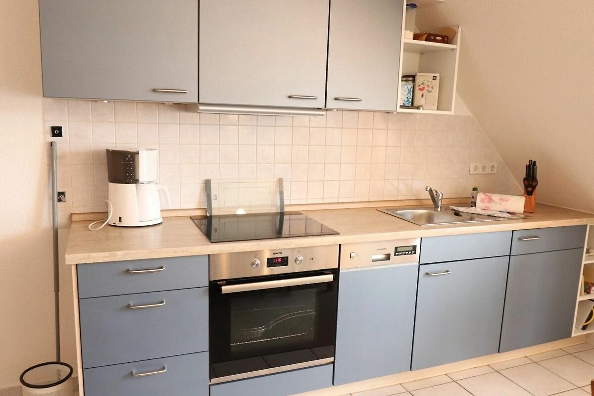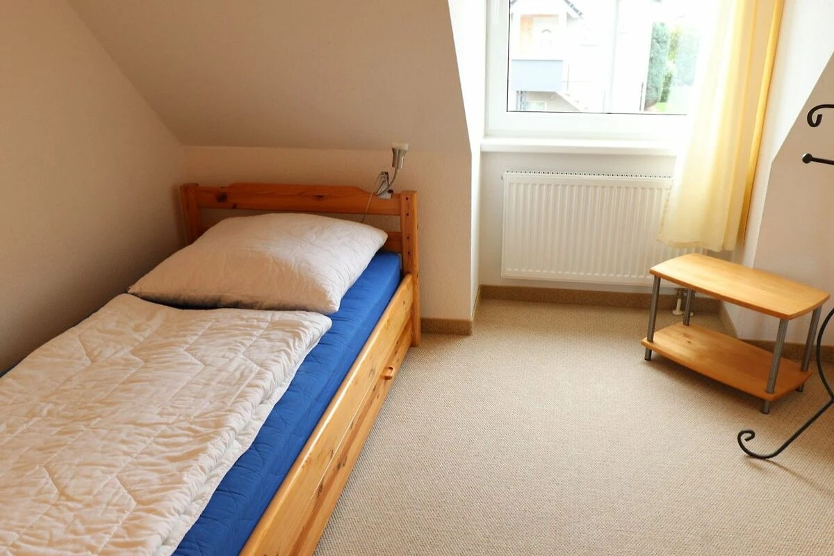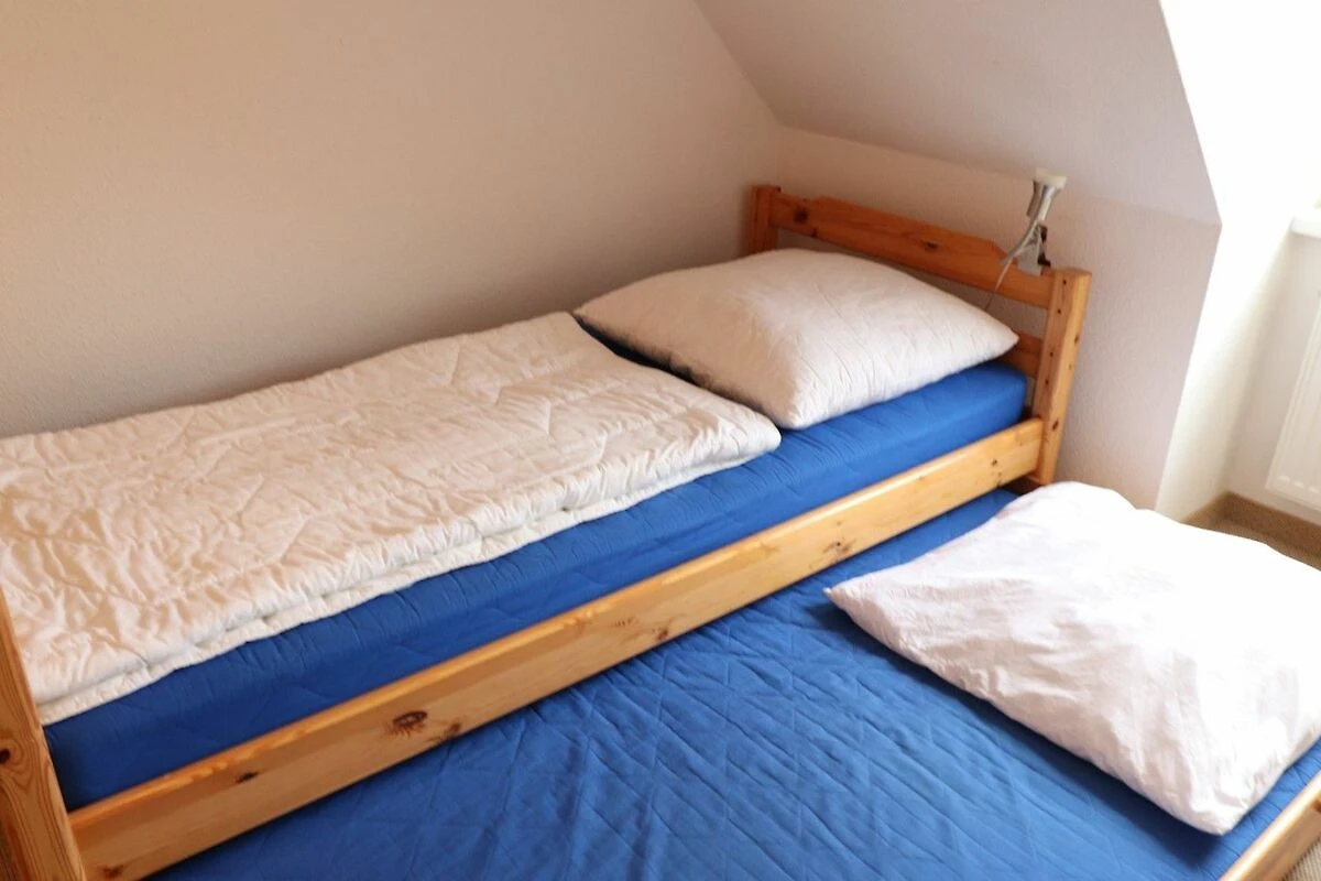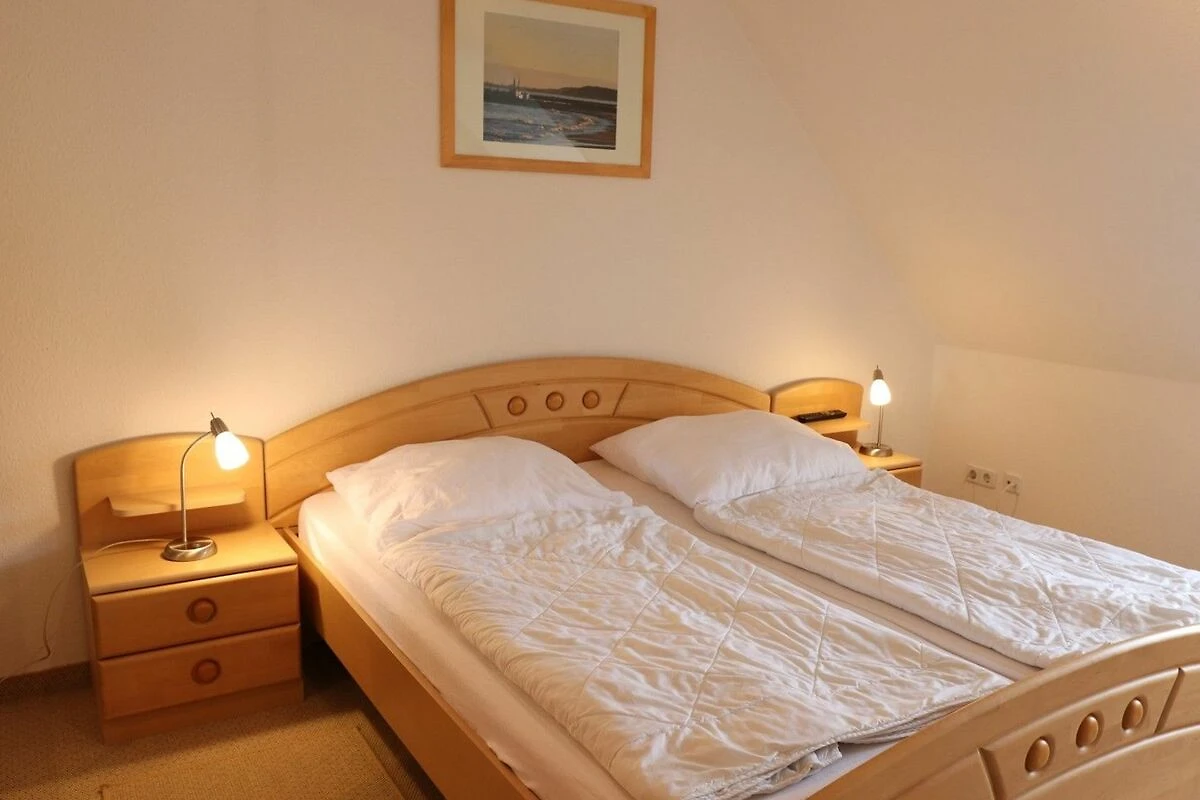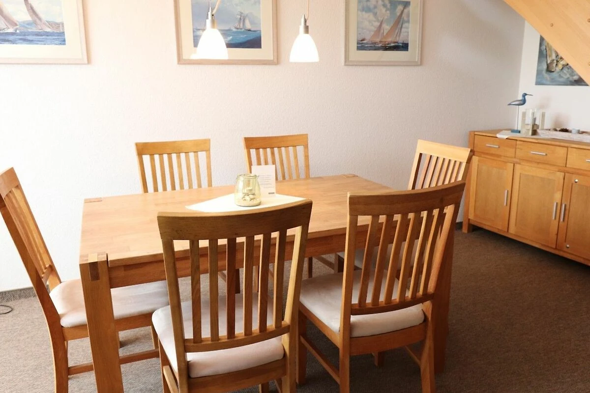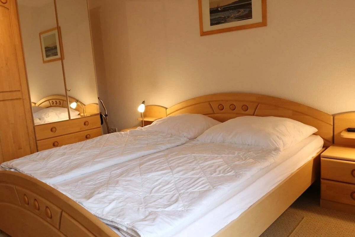 Die grosszügig geschnittene Wohnung ist komfortabel ausgestattet und bietet optimale Urlaubsbedingungen - 3,5 Zimmer auf 65m² im Obergeschoss, für 4 Personen mit zwei Schlafzimmern, eines mit Doppelbett und eines mit einem Einzelbett zum ausziehen, so dass auch hier 2 Personen komfortabel schlafen können.