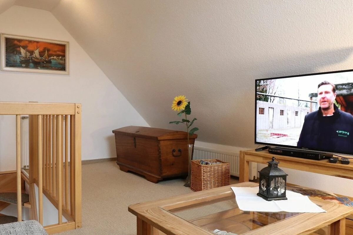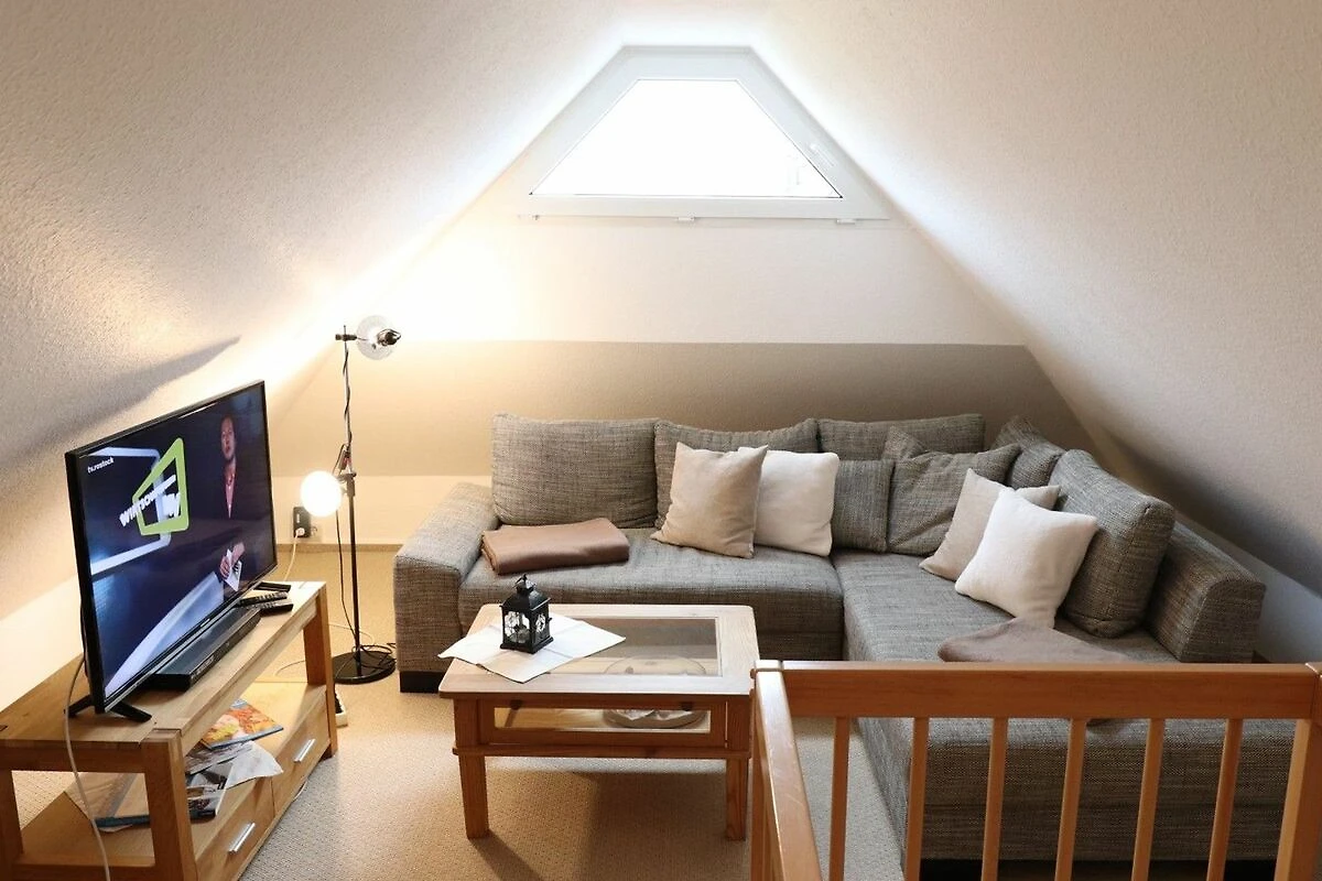 Ein zusätzliches Highlight in dieser Ferienwohnung ist das Galleriezimmer. Hier können Sie sich gemütlich zurückziehen oder mit der ganzen Familie Brettspiel-Abende veranstalten.