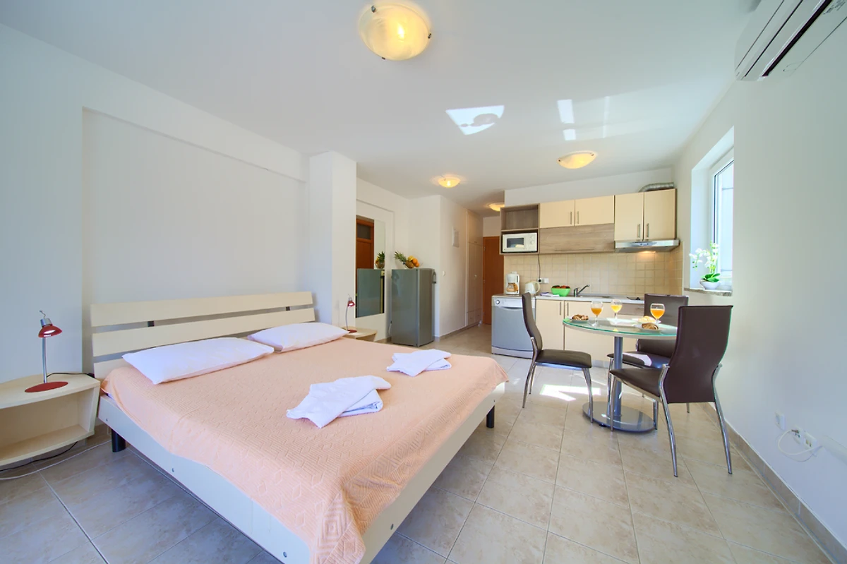 | Studio Apartment 2+1 2-Personen: 1.1-1.6.;1.10-31.12. = 65€ 1.6-1.7.; 1.9-1.10. = 75€ 1.7-31.8.= 90€ 3-Personen: 1.1-1.6.;1.10-31.12. = 75€ 1.6-1.7.; 1.9-1.10. = 85€ 1.7-31.8.= 100€ Apartment 2+2 4-Personen: 1.1-1.6.;1.10-31.12. = 90€ 1.6-1.7.; 1.9-1.10. = 100€ 1.7-31.8.= 140€ |
