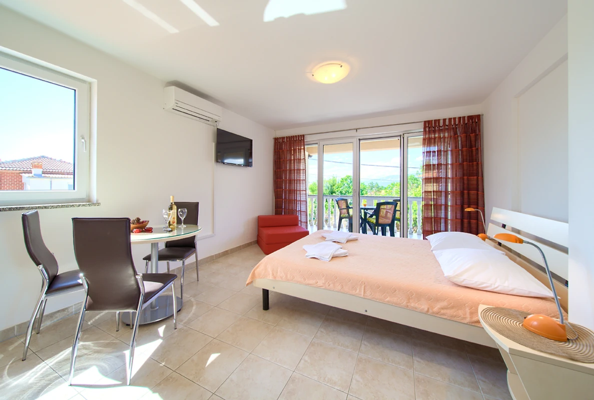 Unsere Appartements befinden sich in einem Zweifamilien-Haus das 2008. gebaut wurde, in der Nähe des Ortszentrums (um die 5 Minuten zu Fuß). Die Vier-Sterne-Appartements sind ganz neu, modern eingerichtet und etwa hundert Meter vom Meer und dem für Kinder idealen Sandstrand entfernt.