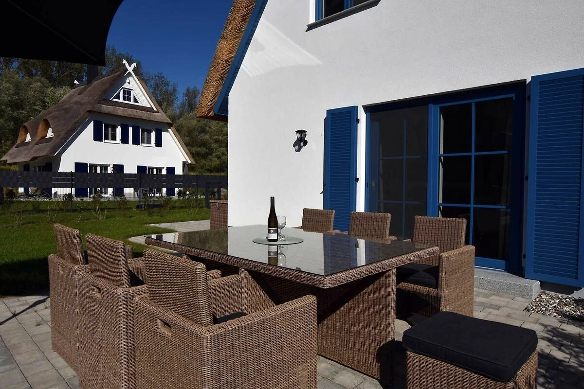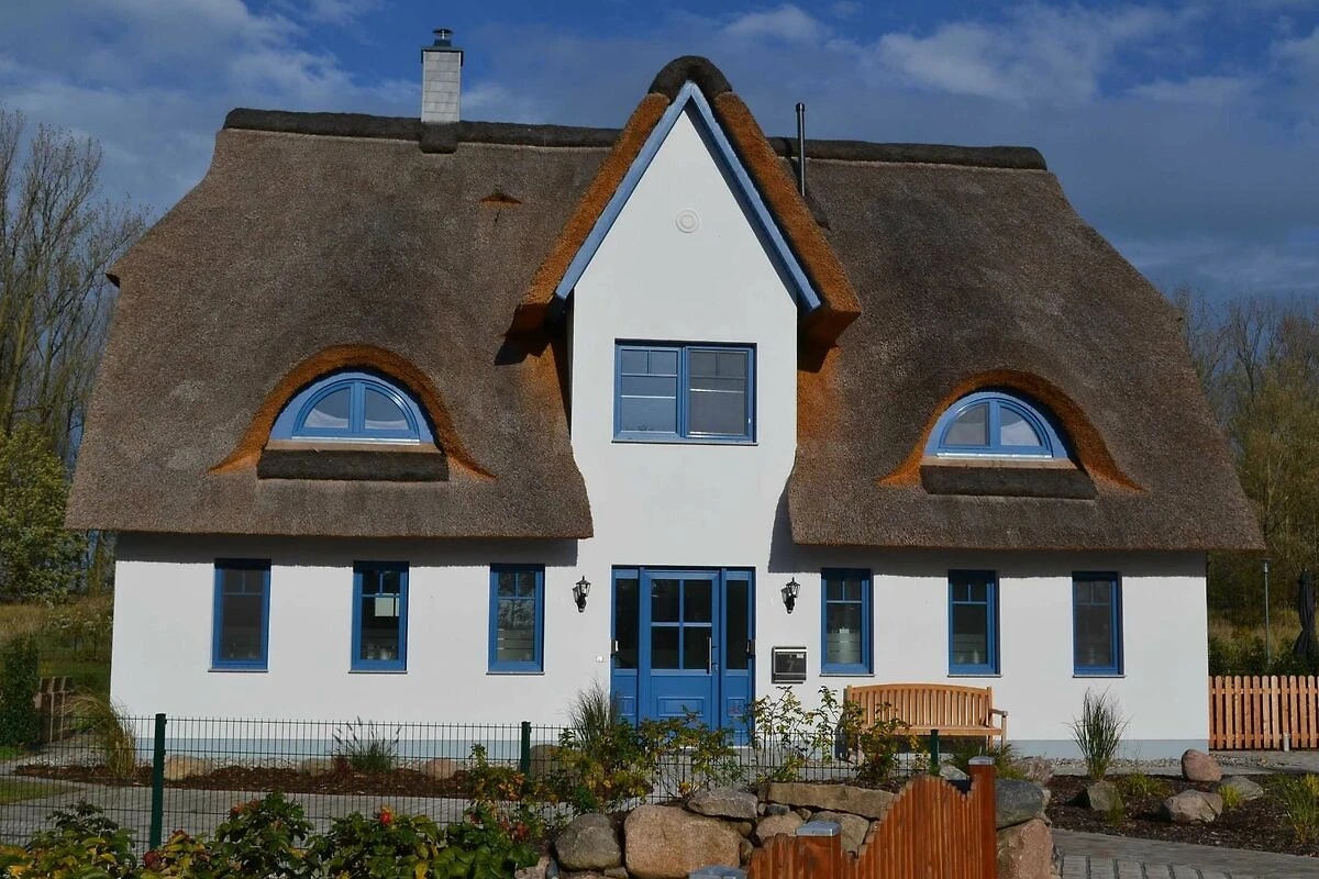 Reetdach-Ferienhaus mit Kamin im Ostseebad Rerik für max 11 Personen + 2 Babys auf 190m² Wohnfläche plus eingezäuntem Garten. Haustiere willkommen.