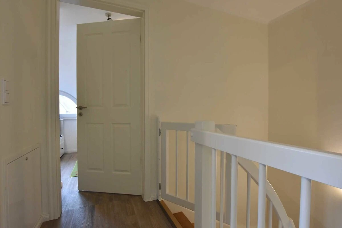 Im Obergeschoss zwei weitere Schlafzimmer. Davon ist ein Schlafraum mit Doppelbett (1,80 x 2 m) & TV ausgestattet. Im anderen Schlafzimmern steht ein Einzelbett. Das geräumige Bad verfügt über Dusche/ WC sowie Badewanne.