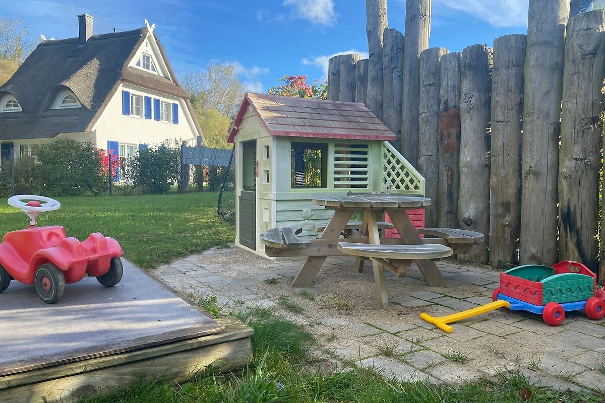 Im Ferienhaus sind Haustiere willkommen. Je Haus bietet eingezäunter Garten. Ein zusätzlicher Gemeinschaftsgarten für Kinder ist eingezäunt und bleibt allerdings tierfrei! Gebühr je Haustier und Tag 10 EUR. Ihr Hund darf nicht unbeaufsichtigt im Ferienhaus bleiben.