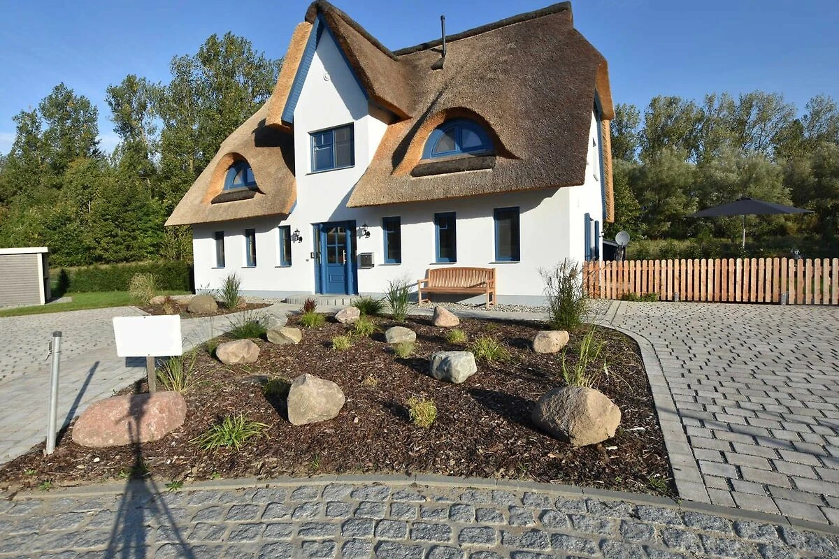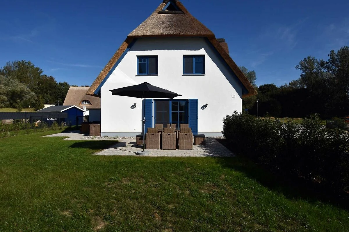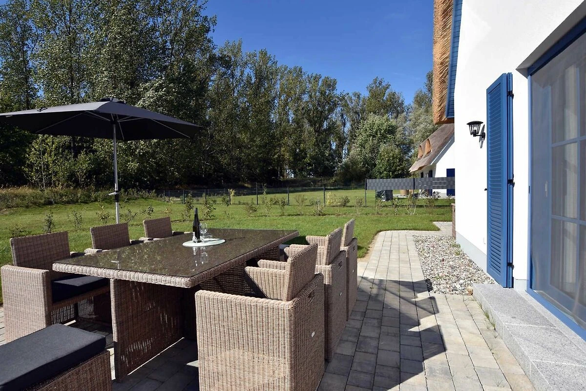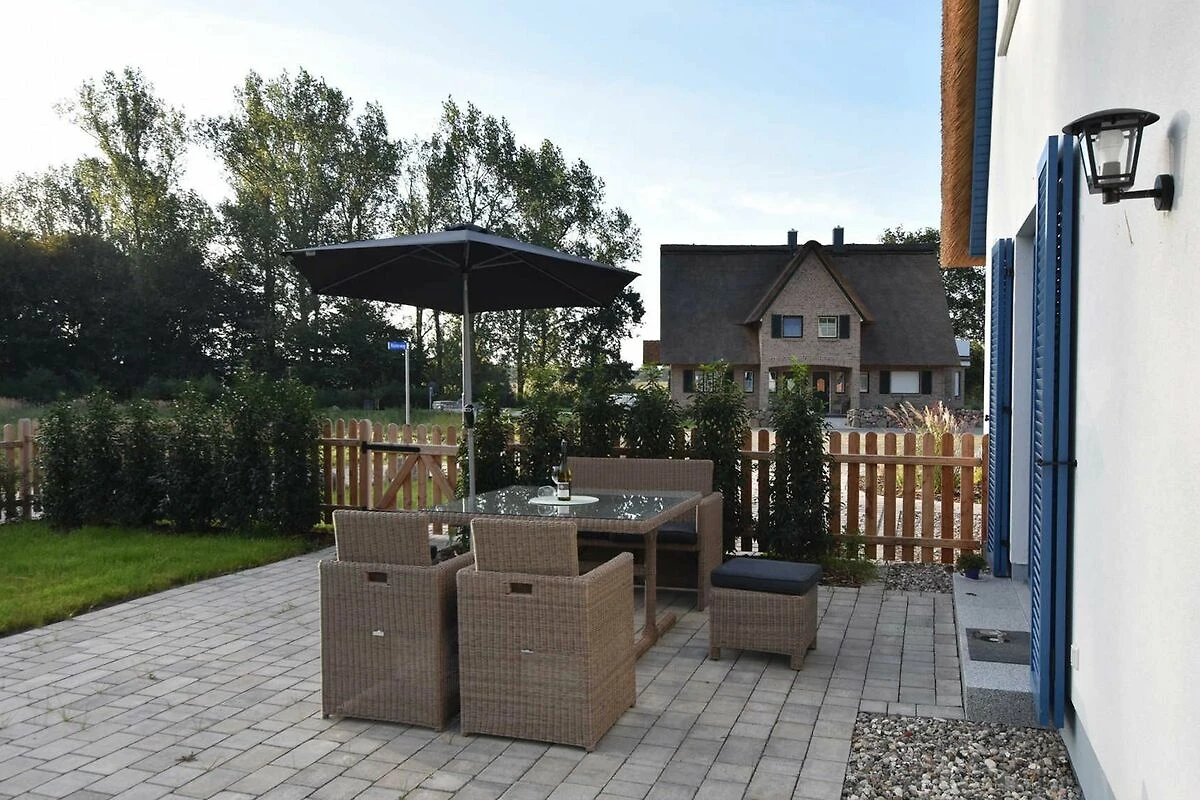 Reetdach-Ferienhaus im Ostseebad Rerik mit 2 Doppelhaushälften. Diese rechte Doppelhaushälfte rechts (85 m²) ist für 5 Personen + 1 Baby geeignet.