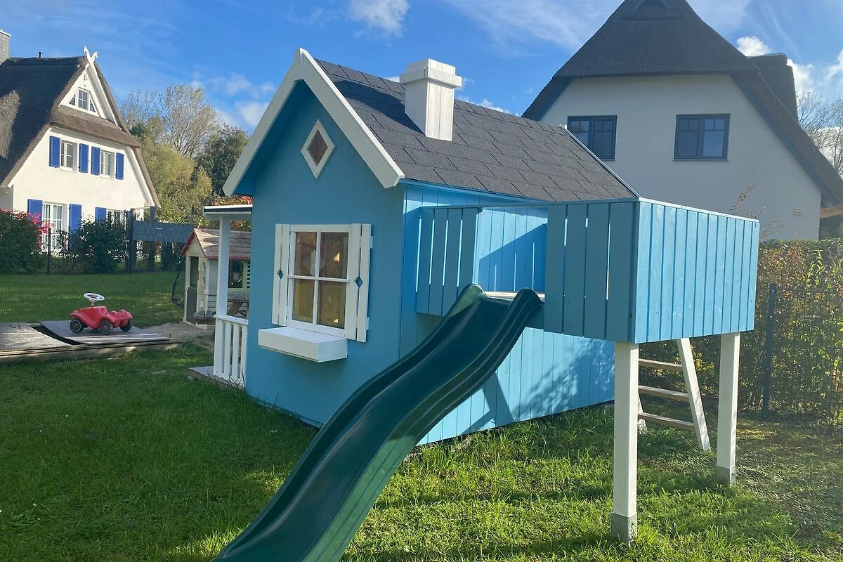 Babybett (Reisebett - ohne Kinderbettwäsche!), Hochstuhl, kindersichere Steckdosen, Treppenschutzgitter, grosser, eingezäunter Garten für jede Wohnung vorhanden. Zusätzlich gibt es einen Gemeinschaftsgarten mit Strandkorb und Sandkasten), in dem keine Haustiere zulässig sind.