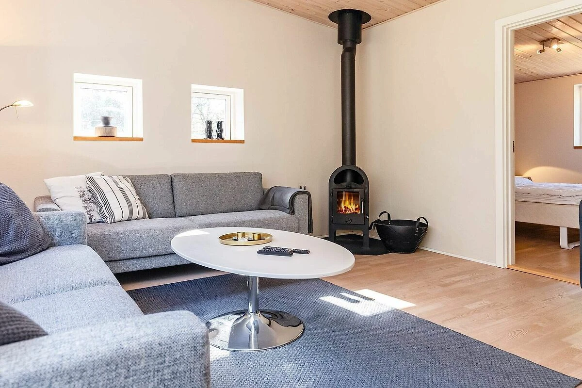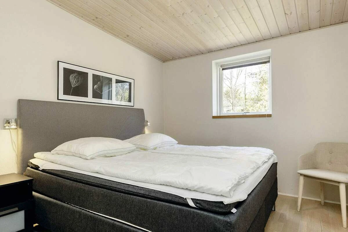 Dieses hell und in typisch skandinavischem, eher schlichtem Stil eingerichtete Ferienhaus liegt nur wenige Gehminuten von Meer und Küste entfernt, auf einem schönen Naturgrundstück bei Als Odde. Helles Wohnzimmer mit Holzofen und Zugang zu einer teilweise überdachten Terrasse. Der helle Essplatz ist offen in den geräumigen Küchenbereich integriert und bietet ebenfalls Zugang zur Terrassenfläche. Außerdem drei Schlafzimmer mit je einem Doppelbett und ein Schlafzimmer mit zwei Etagenbetten im Haus. Zwei helle Badezimmer mit Dusche, eines zudem mit Whirlpool und Sauna, sowie ein kleiner, funktionaler Eingangsbereich runden den positiven Gesamteindruck ab. Das Ferienhaus steht auf einem recht gut abgeschirmten Naturgrundstück und stellt im Außenbereich etwa 100 m2 Holzterrasse zur Verfügung. Keine Vermietung an Jugendgruppen erwünscht!