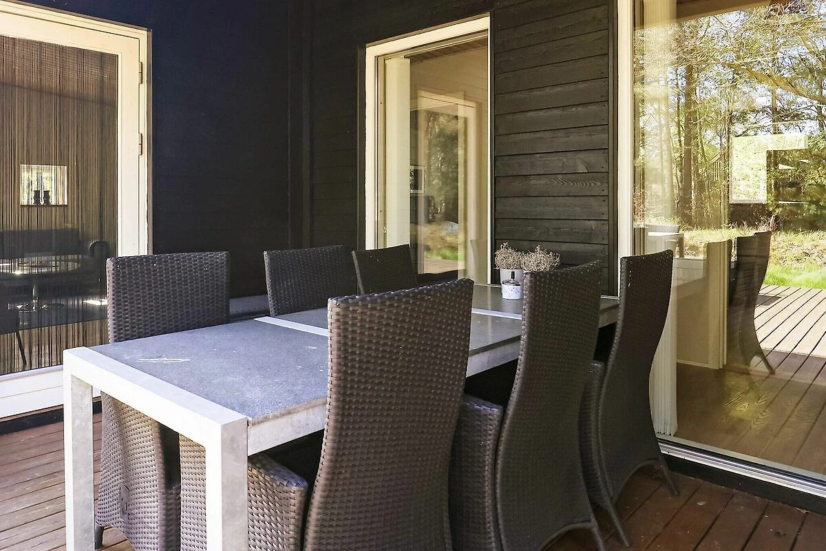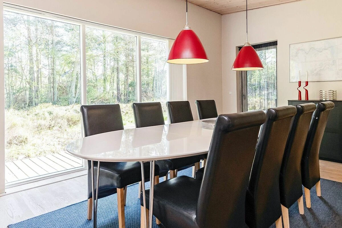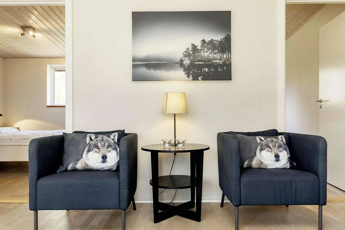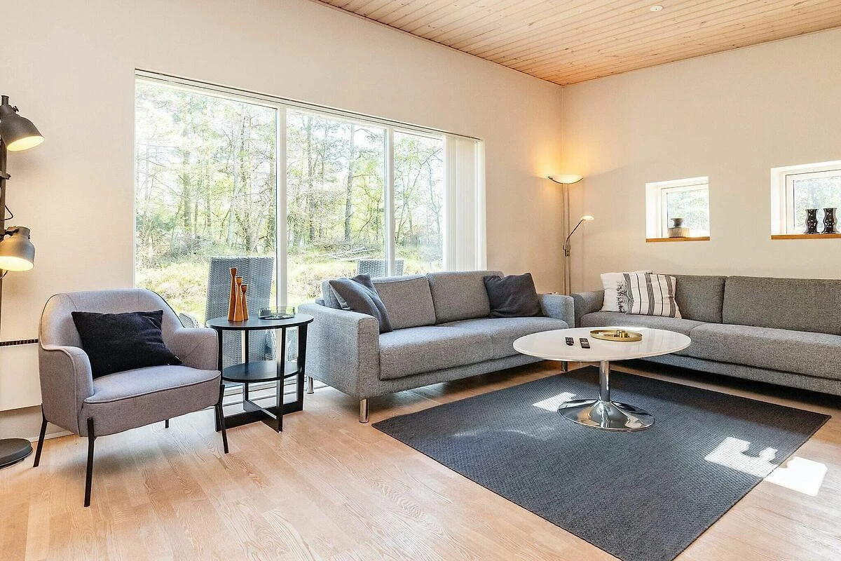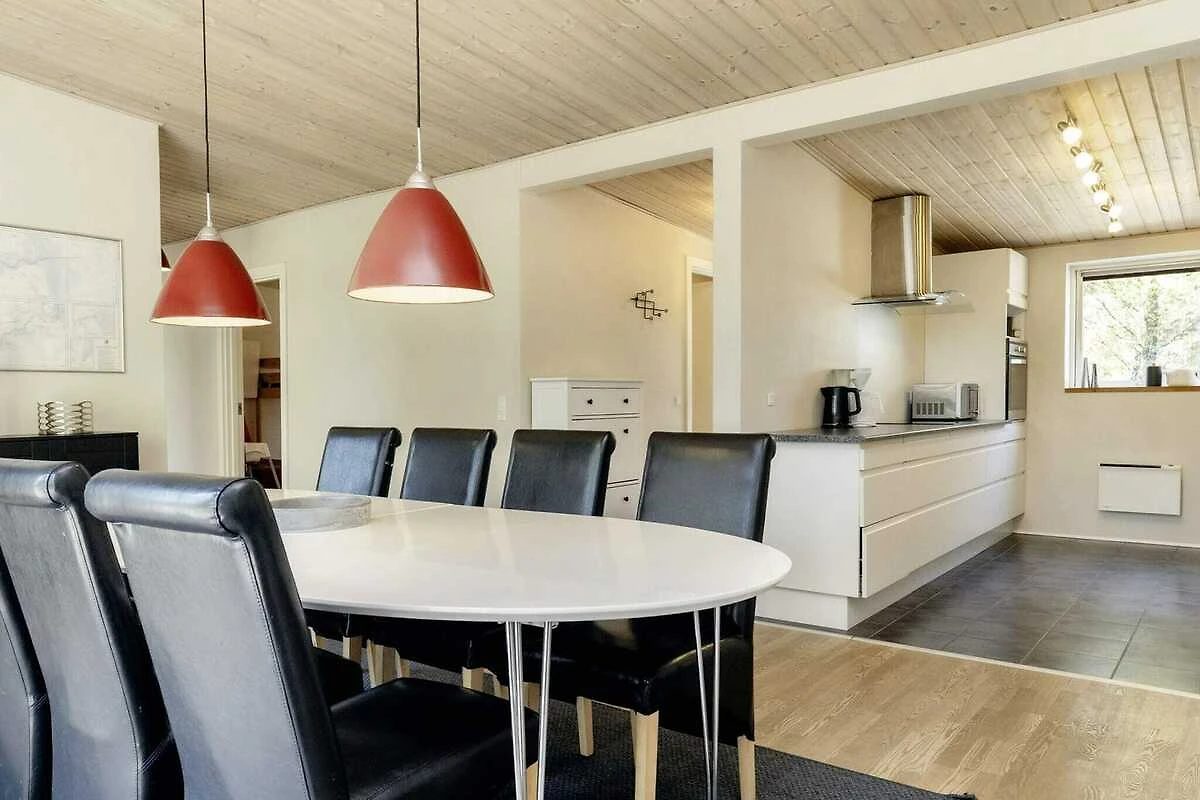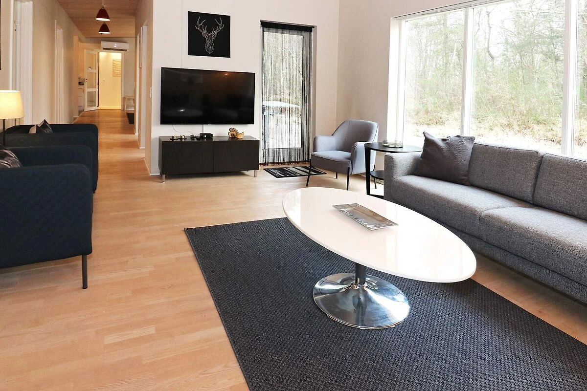 , offene Küche(Kochherd(elektrisch), Dunstabzugshaube, Kaffeemaschine, Spülmaschine, Kühl-/Gefrierkombination), Wohn-/Schlafzimmer(TV(Deutsch Fernsehsender, dänische Fernsehsender), DVD-Spieler, Hochstuhl), Schlafzimmer(Doppelbett, Babybett), Schlafzimmer(Doppelbett), Schlafzimmer(4x Etagenbett), Schlafzimmer(Doppelbett), Badezimmer(Trockner, Badewanne oder Dusche, Waschbecken, Toilette, Waschmaschine), Badezimmer(Badewanne oder Dusche, Waschbecken, Toilette), Whirlwanne(im Innenbereich), Sauna(im Innenbereich, erwärmt), Heizung(elektrisch), Terrasse, Terrasse(überdacht), Grill, Luft-Luft-Wärmepumpe
