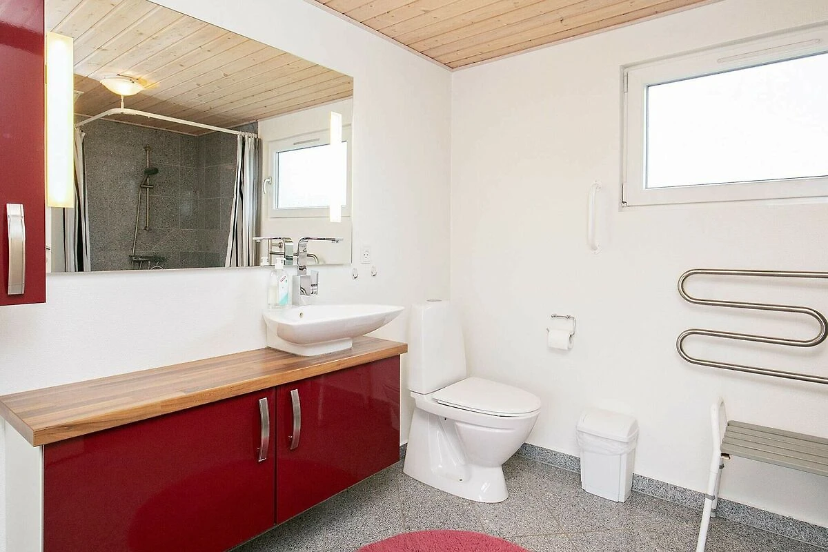 Offene Küche(Kochherd(elektrisch), Dunstabzugshaube, Kaffeemaschine, Spülmaschine, Kühlschrank(+ Gefrierfach)), Wohn-/Schlafzimmer(TV(Satellit, Deutsch Fernsehsender, dänische Fernsehsender)), Schlafzimmer(2x Einzelbett), Schlafzimmer(2x Einzelbett), Badezimmer(Fußbodenheizung)(Badewanne oder Dusche, Waschbecken, Toilette, Waschmaschine), Heizung(elektrisch), Terrasse