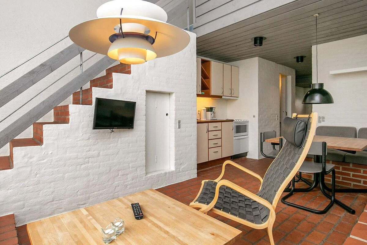 Ferienwohnung bei Tranum Strand. Die Wohnung ist mit einem Schlafzimmer im Erd- sowie zwei Schlafzimmern im Obergeschoss eingerichtet. Im Parterre liegen auch der Küchen-/Wohnbereich mit Zugang zur Terrasse und ein separates Duschbad und ein WC. Alles ist gepflegt und in Ordnung. Als Mieter der Ferienwohnung haben Sie vor Ort Zutritt zu einem Gemeinschaftspool (geöffnet von Ostern bis KW 42). Der Außenpool vor Ort ist von Woche 27 bis Woche 33 geöffnet. Es gibt zudem weitere Aktivitätsangebote wie Tischtennis und Billard. Hier können Sie einen abwechslungsreichen Urlaub mit einem sehr großen und vielfältigen Angebot an Aktivitäten direkt vor Ihrer Haustür verbringen! Diese Wohnung bietet sich für Urlauber an, die unweit der Nordseeküste diverse Freizeitangebote für Spiel, Sport und Spaß mit der Familie nutzen möchten. Die herrliche Küstenlandschaft mit ihren Dünen und breitem Sandstrand liegt zudem in unmittelbarer Nähe, ideal für Sommertage und Strandspaziergänge. Wasser: Festpreis DKK 205,- pro Woche. Keine Vermietung an Jugendgruppen erwünscht!Kurz vor Ihrem Ankunftsdatum kann eine rückzahlbare Kaution erhoben werden. Die Kaution stellt sicher, dass Ihr Aufenthalt reibungslos verläuft, und deckt eventuelle Zusatzleistungen oder Verbrauchskosten ab.Diese Kaution deckt den Verbrauch von Nebenkosten während Ihres Aufenthalts sowie zusätzliche in Anspruch genommene Leistungen ab.Der endgültige Betrag wird anhand der tatsächlichen Zählerstände und Nutzung zusätzlicher Services angepasst. Ein etwaiger Restbetrag wird Ihnen innerhalb von 21 Tagen nach dem Check-out zurückerstattet.Die Kaution dient lediglich als Vorauszahlung für Leistungen, die Sie ohnehin bezahlen würden, und ermöglicht einen reibungslosen Ablauf Ihres Aufenthalts und Check-outs.