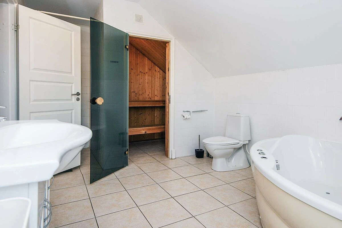 Offene Küche(Kochherd(elektrisch), Dunstabzugshaube, Kaffeemaschine, Mikrowelle, Spülmaschine, Kühl-/Gefrierkombination), Wohn-/Schlafzimmer(TV(Kabel)), Schlafzimmer(Doppelbett), Schlafzimmer(Doppelbett), Schlafzimmer(2x Einzelbett), Schlafzimmer(2x Einzelbett), Badezimmer(Fußbodenheizung)(Trockner, Badewanne oder Dusche, Waschbecken, Toilette, Waschmaschine), Badezimmer(Fußbodenheizung)(Badewanne oder Dusche, Waschbecken, Toilette), Whirlwanne(im Innenbereich, erwärmt, 2 Personen), Sauna(im Innenbereich, erwärmt, 6 Personen), Heizung(elektrisch), Terrasse