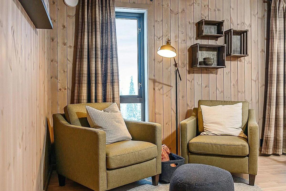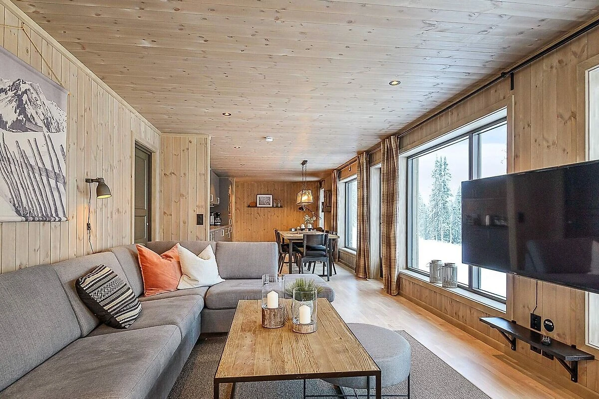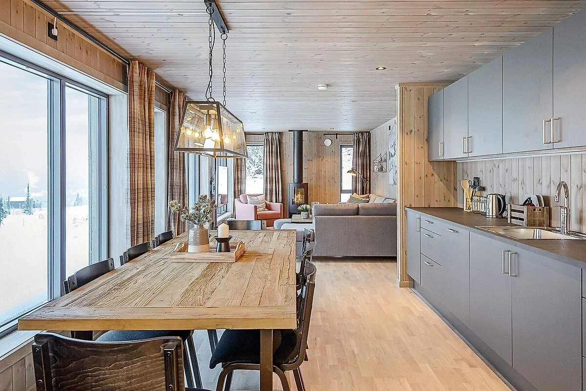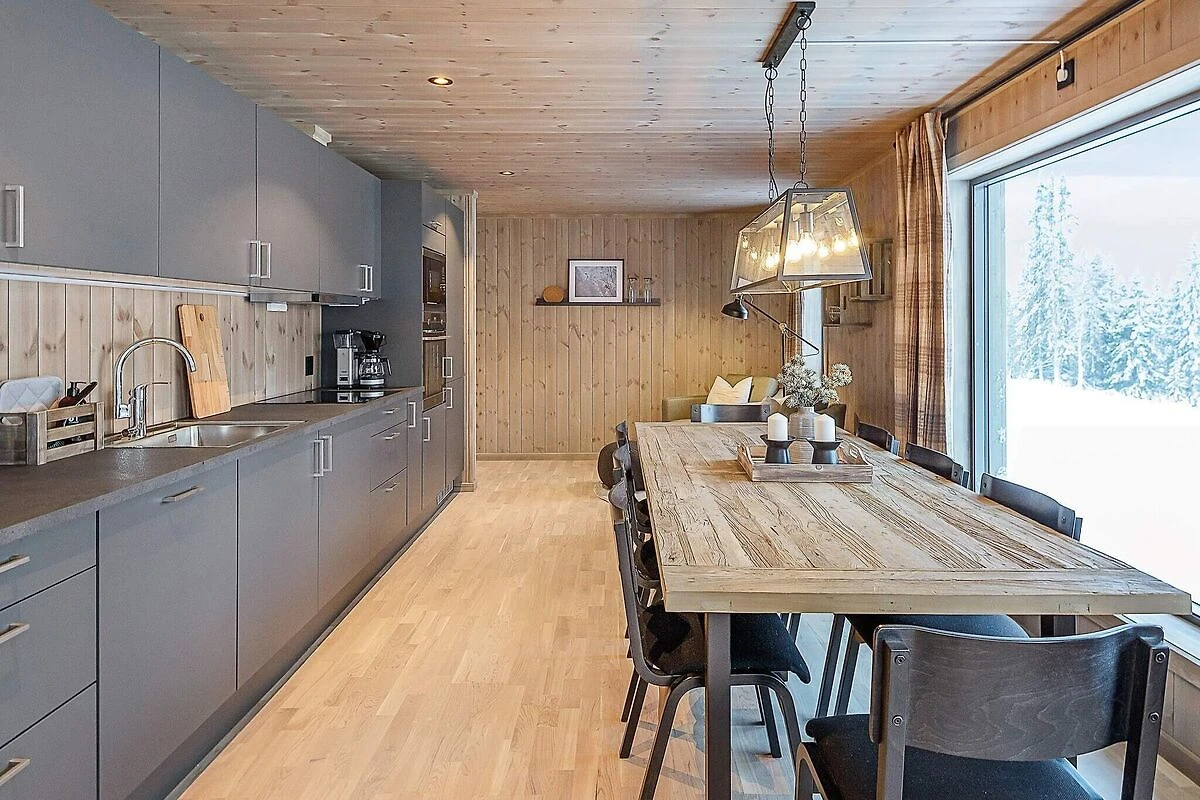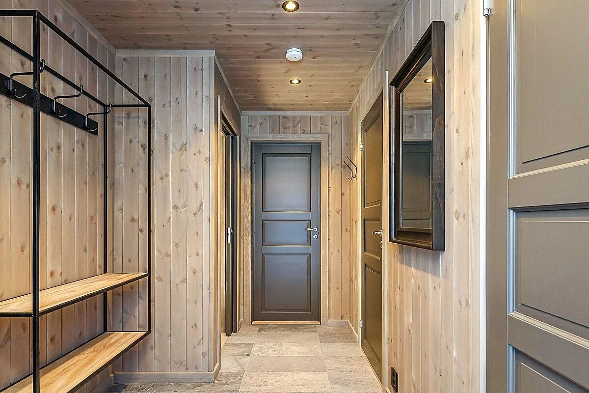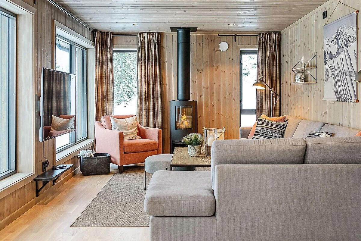 Stilvoll eingerichtetes und qualitätsbewusst ausgestattetes Ferienhaus in großartiger Lage im Gebirge, näher bezeichnet im Hüttengebiet Varden Fjellandsby. Das überdurchschnittliche Wohnambiente lädt zu erholsamen Urlaubstagen in den Bergen mit der ganzen Familie ein. Nach einem aktiven Tag draußen in der Natur, die hier buchstäblich direkt vor der Haustür beginnt, können Sie in der Sauna relaxen oder vor dem wärmendem Kaminofen im Wohnzimmer entspannen. Nehmen Sie einfach auf dem bequemen Sofa Platz und genießen Sie dabei auch die herrliche Aussicht durch die vielen Panoramafenster des Wohnzimmers! Das Ferienhaus ist geschmackvoll und zugleich funktional eingerichtet. Man verfügt hier über vier Schlafzimmer, zwei davon mit je einem Doppel- und einem Etagenbett für Familien ausgestattet. Alle vier Etagenbetten im Haus sind sogenannte Familienbetten mit doppelter Liegefläche unten und Einzelkoje darüber (siehe Fotos). Das Ferienhaus ist dennoch für max. 10 Personen zugelassen. Außerdem zwei Badezimmer mit jeweils Dusche und WC im Haus, eines davon zudem mit Sauna. Zur zeitgemäßen Küchenausstattung gehören u.a. Kühl- und Gefrierschrank, Geschirrspüler und Mikrowelle. Außerdem praktische Helfer wie Waschmaschine und Wäschetrockner im Bad. Sie wohnen hier mitten in der Natur und zudem in der Nähe der Skipisten am Kvitfjell Varden. Man kann direkt vor der Hütte parken. Es sind etwa 10 km bis zum nächsten Dorf mit Einkaufsmöglichkeiten. Zum nächsten Nachbarhaus sind es etwa 20 m. Tolles Wandergebirge ringsum, das sowohl zu Fuß als auch mit dem Mountainbike erkundet werden kann. Nach etwa einer halben Autostunde erreichen Sie diverse Ausflugsziele, darunter auch Hunderfossen im Süden und das Badeland von Fron im Norden. Kürzere Entfernung zum hübschen, kleinen Ortszentrum von Fåvang und zum Dorf Ringebu. Genießen Sie Ihre Urlaubszeit hier im sagenumwobenen Reich von Peer Gynt!