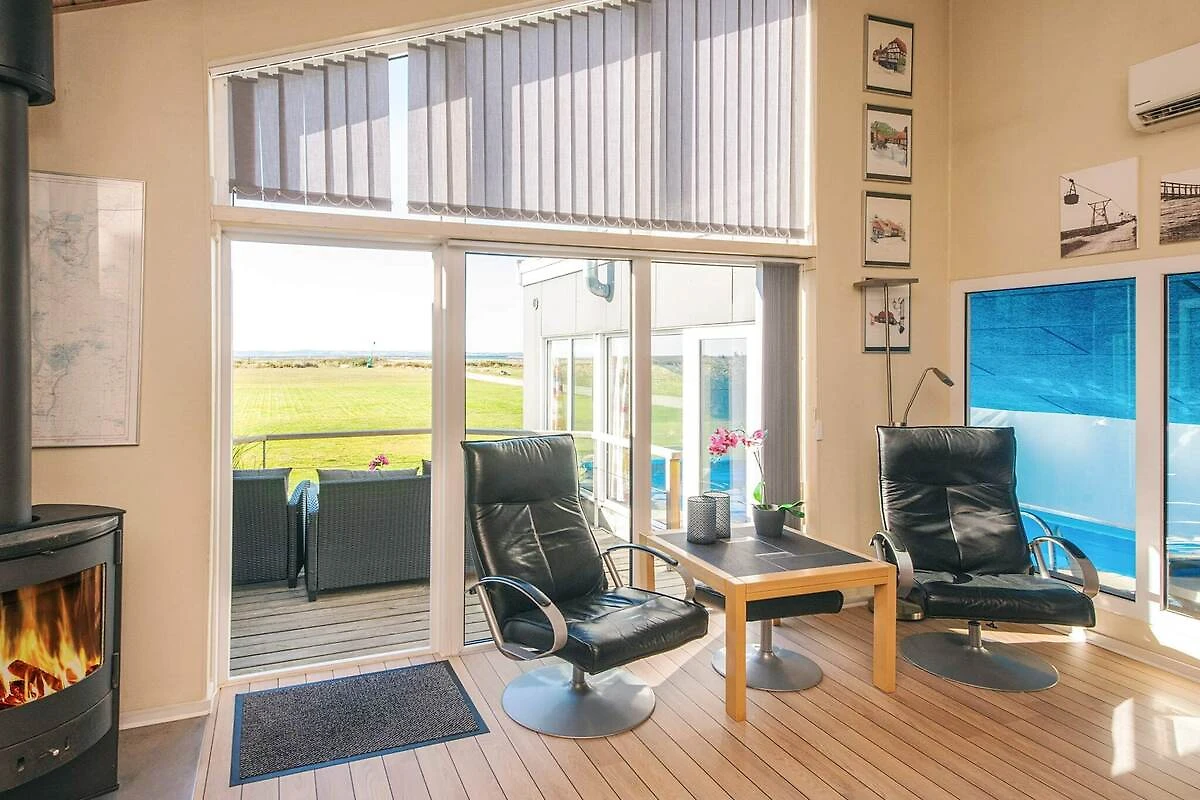 Ansprechendes, gut instand gehaltenes 156 m2 großes Ferienhaus mit hauseigenem Swimmingpool, gelegen auf einem 3.300 m2 großen Naturgrundstück vorne in erster Reihe bei Øer, mit erstklassigem Panoramaausblick zum Meer! Im attraktiven Poolbereich finden Sie den 24 m² großen Pool mit Kinderbecken und Gegenstromanlage. Außerdem können Sie hier wunderbar im 5 Personen Standwasser-Whirlpool mit Massagedüsen und Temperaturregler oder in der Sauna für max. 5 Pers. entspannen. Ein Badezimmer mit Verbindung zum Poolbereich. Pool und Whirlpool werden durch eine energieeffiziente, kostensparende Wärmepumpe erwärmt. Der Poolraum ist vom Wohnzimmer aus einsehbar, ein praktisches Detail für Eltern größerer Kinder, die bereits sicher allein schwimmen können. Im Wohnzimmer gibt es einen Flachbildfernseher mit Satellitenschüssel, DVD/Radio und Soundsystem, das an den Fernseher angeschlossen ist. Gemütliche Beleuchtung. Vom Wohnzimmer führt zudem eine Treppe (mit Schutzgitter) hinauf zum Hems mit zwei Schlafplätzen, Fernseher mit DVD-Spieler und einem Fenster, das geöffnet werden kann. Vom erhöht gelegenen Wohnbereich hat man Zugang zur ebenfalls erhöhten Terrassenfläche mit herrlichem Ausblick in die Umgebung! Sie wohnen hier nur ca. 50 m vom kinderfreundlichen Sandstrand. Außerdem zur Verfügung: je zwei Kinderbetten und Hochstühl. Beheizt wird das Haus mit einer Klimaanlage/Wärmepumpe installiert, die die primäre Wärmequelle des Hauses ist. Auflademöglichkeit für E-Autos: 230V 16A CEE Stecker. Von der zeitgemäß ausgestatteten Küche hat man zudem Zutritt auf eine überdachte Terrasse mit Grill, Sitzgelegenheiten und Liegen, die für sonnige Tage und gemütliche Grillabende mit Blick zum Sonnenuntergang genutzt werden kann. Das Frühstück können Sie auf der schönen Morgenterrasse genießen. In dem Schuppen können Sie verschiedene Sachen aufbewahren und es gibt hier einen Kühlschrank mit Gefrierfach sowie diverse Spielsachen für draußen. Das Ferienhaus wird fortlaufend gepflegt und instand gehalten. Keine Vermietung an Jugendgruppen erwünscht!Kurz vor Ihrem Ankunftsdatum kann eine rückzahlbare Kaution erhoben werden. Die Kaution stellt sicher, dass Ihr Aufenthalt reibungslos verläuft, und deckt eventuelle Zusatzleistungen oder Verbrauchskosten ab.Diese Kaution deckt den Verbrauch von Nebenkosten während Ihres Aufenthalts sowie zusätzliche in Anspruch genommene Leistungen ab.Der endgültige Betrag wird anhand der tatsächlichen Zählerstände und Nutzung zusätzlicher Services angepasst. Ein etwaiger Restbetrag wird Ihnen innerhalb von 21 Tagen nach dem Check-out zurückerstattet.Die Kaution dient lediglich als Vorauszahlung für Leistungen, die Sie ohnehin bezahlen würden, und ermöglicht einen reibungslosen Ablauf Ihres Aufenthalts und Check-outs.