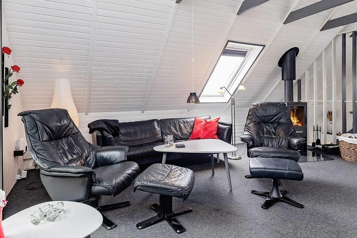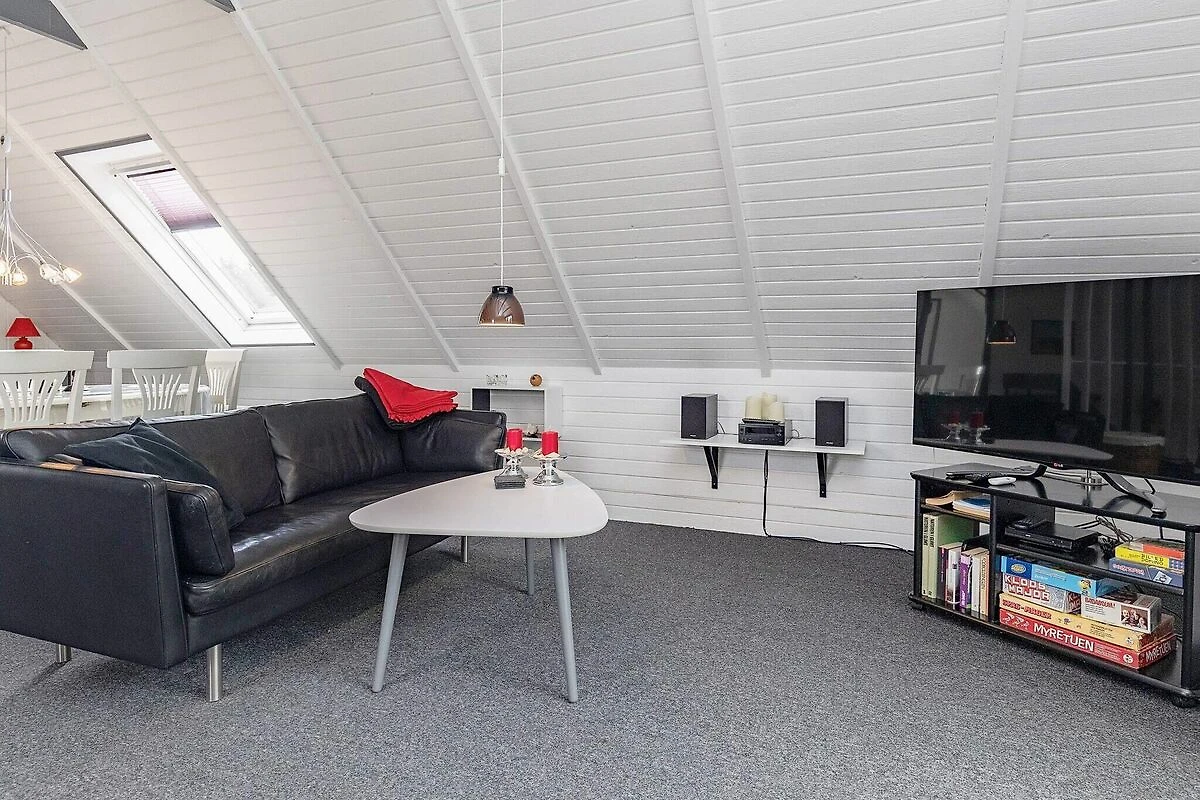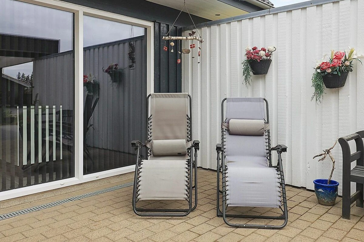 Offene Küche(Kochherd(elektrisch), Dunstabzugshaube, Kaffeemaschine, Mikrowelle, Spülmaschine, Kühl-/Gefrierkombination), Wohn-/Schlafzimmer(TV(Kabel, Deutsch Fernsehsender, dänische Fernsehsender), DVD-Spieler, CD-Spieler, Stereoanlage, Hochstuhl), Schlafzimmer(Doppelbett, Kinderbett), Schlafzimmer(2x Einzelbett), Schlafzimmer(2x Einzelbett), Badezimmer(Fußbodenheizung)(Badewanne oder Dusche, Waschbecken, Toilette, Waschmaschine), Spülmaschine, Sauna(im Innenbereich, erwärmt, 4 Personen), Heizung(elektrisch), Terrasse, Grill, Luft-Luft-Wärmepumpe