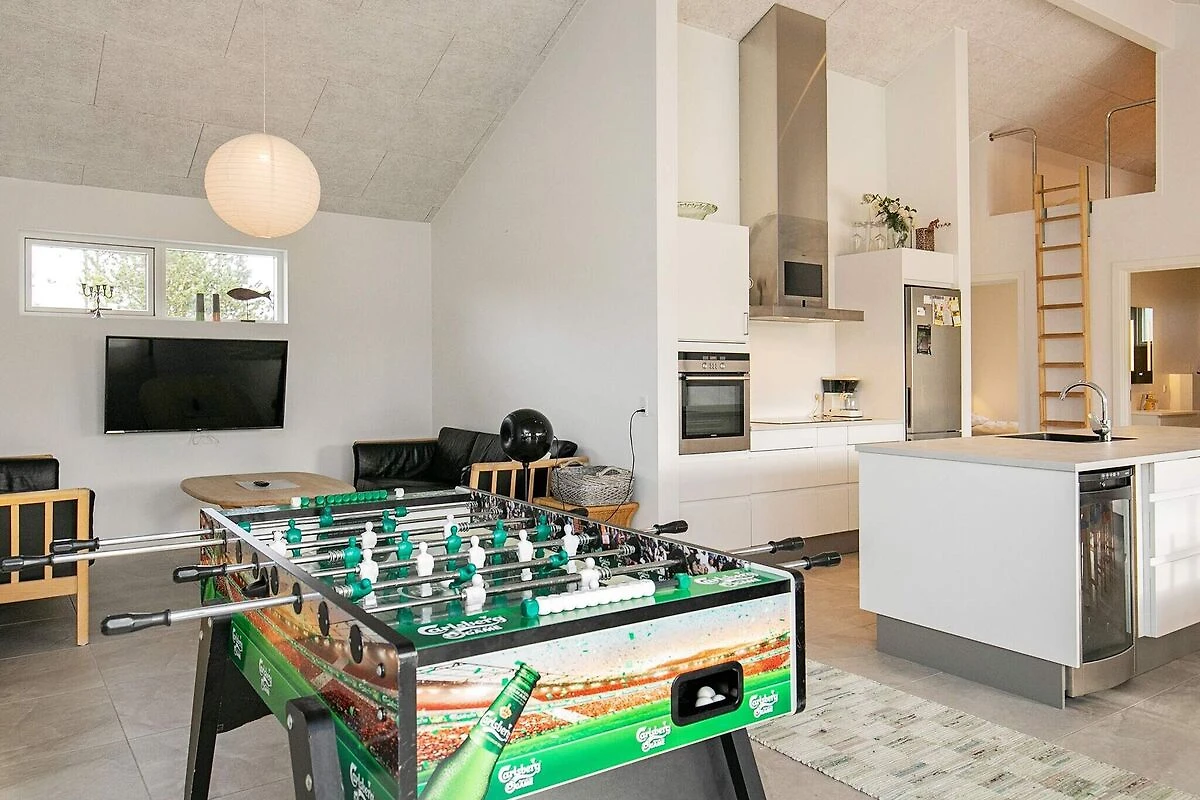 Das Haus hatte eine wirklich tolle Ausstattung (Pool, Sauna, schöne Küche, mehrere Fernsehgeräte, Dartscheibe, Tischfußballtisch, Spielgerät im Garten, Beachvolleyball-Platz etc,), Theoretisch hat das Haus auch einen Grill, dieser war jedoch so verschmutzt, dass wir ihn nicht nutzen wollten und eine nicht sehr appetitliche Kaffeemaschine, weil alt und nie gereinigt bzw, entkalkt, Auch mit der Endreinigung der Vormieter dürfte etwas schief gegangen sein, Unsere Beschwerde diesbezüglich wurde aber sehr professionell bearbeitet und wir haben eine (kleine) Entschädigung erhalten, Mit dem Haus selbst, der Umgebung und dem Kundenservice von DanCenter waren wir sehr zufrieden,