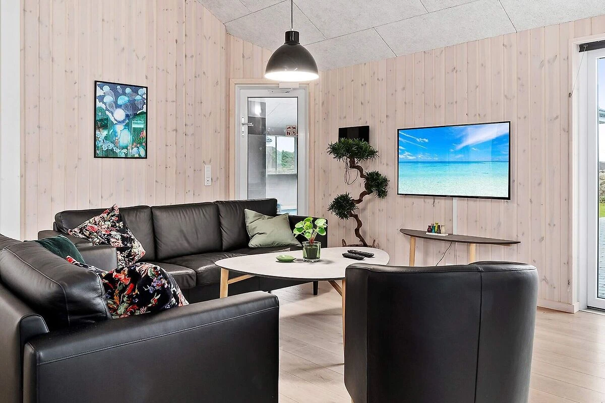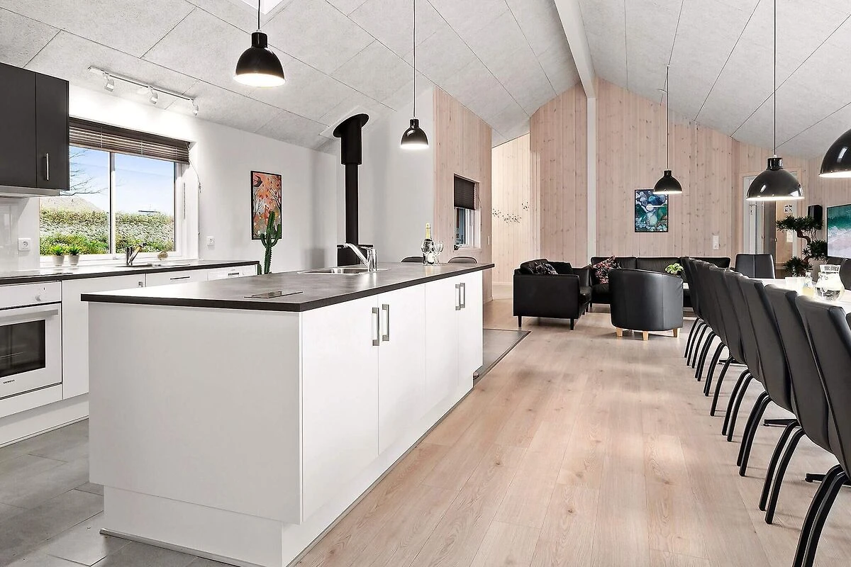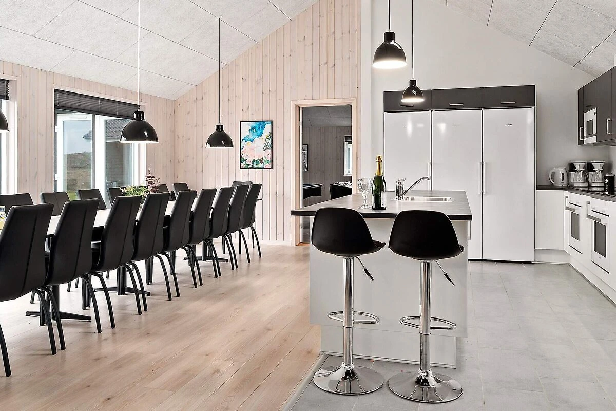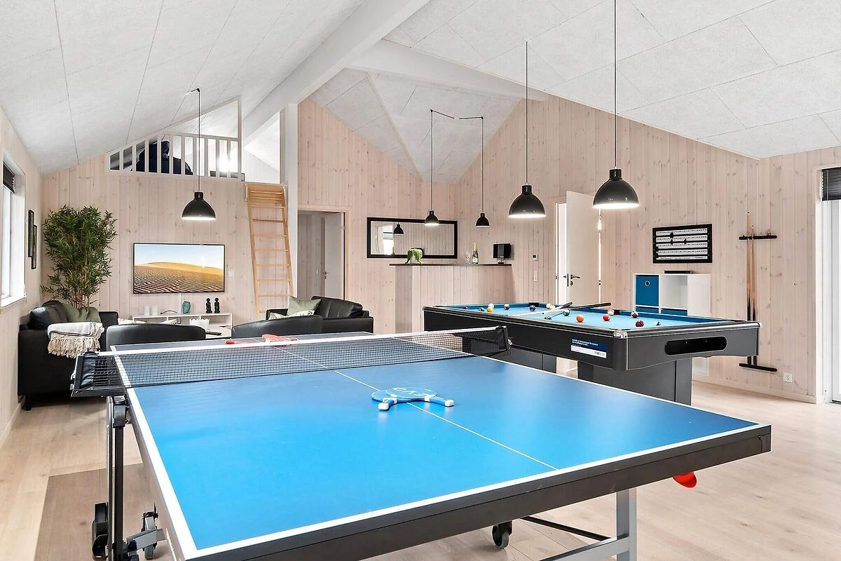 Aktivitäts- und Wohlfühlfaktor sind in diesem ansprechend eingerichteten Ferienhauses ganz groß geschrieben! Ein großer Poolbereich erwartet Sie mit einem Swimmingpool, der mit Gegenstromanlage, Unterwasserbeleuchtung und Wasserrutsche ausgestattet ist. Nach dem Schwimmen können Sie in der Sauna oder im Whirlpool, der 4-6 Personen Platz bietet, entspannen. So erholt kann es im Aktivitätsraum weitergehen, wo Sie sich bei einer Partie Pool am Billardtisch, beim Tischtennis, am Kicker oder einem Spiel an der PlayStation4 herausfordern können. Wer es lieber ruhig mag, setzt sich einfach an die Bar und genießt einen Urlaubsdrink. Das Haus hat eine gute Raumaufteilung, u.a. mit drei separaten Schlafbereichen mit je einem zugehörigen Badezimmer. Ein weiteres Bad ist im Poolbereich untergebracht. Im geschmackvoll eingerichteten Wohnzimmer gibt es einen gemütlichen Sitzbereich und einen langen Esstisch, an dem alle gemütlich beisammen sitzen können. Stereoanlage und Flachbild-TV sorgen hier für Unterhaltung und der Holzofen für gemütliche Wärme. Der offene Küchenbereich verfügt u.a. über je zwei Cerankochfelder, Öfen, Kühlschränke, Kaffeemaschinen und Spülmaschinen. Insgesamt stehen neun Schlafzimmer und zwei geräumige Schlafgalerien zur Verfügung, alle mit Boxspringmatratzen ausgestattet. Die Einzelbetten können zu Doppelbetten zusammengeschoben werden. Draußen können Sie sich auf der teilweise überdachten Terrassenfläche sonnen oder abends ein köstliches Dinner auf dem Grill brutzeln. Mit der modernen Einrichtung und der umfangreichen Ausstattung, ist dieses Skanlux-Haus perfekt für Familienferien mit mehreren Generationen oder den Aufenthalt einer Firma, die ein Meeting außerhalb der Büroräume halten möchte. Das Haus wird über eine Wärmepumpe energiesparend erwärmt. Bitte beachten Sie, dass für den Betrieb des Swimmingpools sowie bei Nutzung der Gegenstromanlage, der Sauna und des Whirlpools mit einem erhöhten Verbrauch von Nebenkosten gerechnet werden muss und deshalb fallen je nach Intensität, Nutzung und Jahreszeit erhöhte Extrakosten an. Modellbilder! ***Auf naheliegenden / direkt an das Haus angrenzenden Flächen werden weiterhin neue Häuser errichtet, so dass wir Sie darauf hinweisen möchten, dass es zu Beeinträchtigungen durch Bauarbeiten kommen kann.*** *** Wichtige Info: Anstelle der Barzahlung vor Ort, zahlen Sie bitte die Kaution und Wäschepakete etc. unter Angabe der Buchungsnummer an unseren Servicepartner auf folgende Bankverbindung ein:IBAN: DE58 2175 0000 0165 3631 28, BIC: NOLADE21NOS.*** Keine Vermietung an Jugendgruppen.