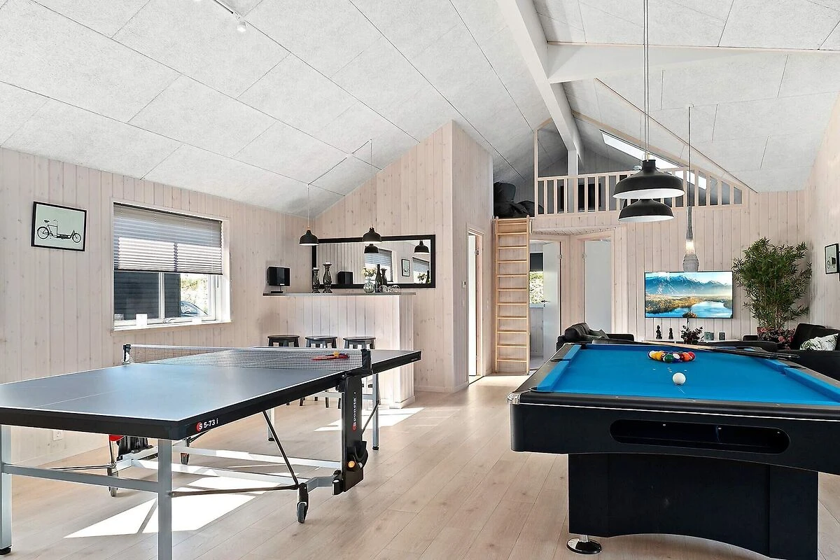 Poolbereich, Spielzimmer mit Billard und Tischtennis sowie der grosse Küchenbereich