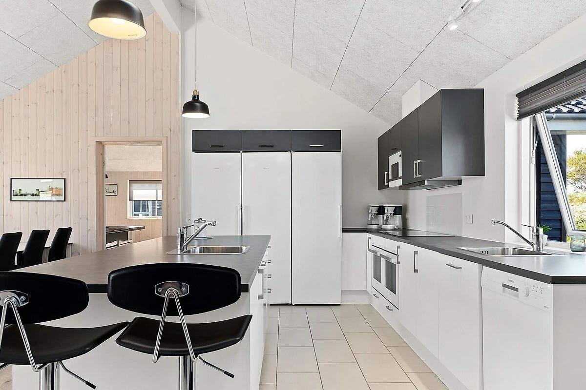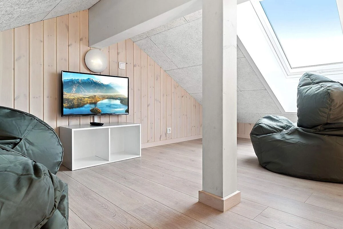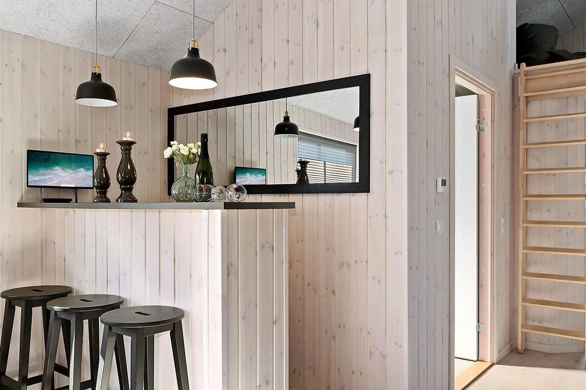 Etwa 900 m vom Sandstrand des OstseeResorts Olpenitz entfernt, bietet dieses Ferienhaus seinen Gästen eine regelrechte Aktivitäts- und Erholungs-Oase. Hier können Sie täglich im Swimmingpool Ihre Runden drehen, abends sogar mit Unterwasserbeleuchtung. Wer die Kondition testen möchte, schaltet die Gegenstromanlage ein und die Kinder haben sicher Ihren Spaß bei einer Rutschpartie ins erfrischende Nass. Der Poolbereich bietet aber auch einen Whirlpool für 4-6 Personen und eine Sauna – für Entspannung ist also gesorgt. Wer nicht im Poolraum zu finden ist, wird sicherlich im Aktivitätsraum eine Partie Billard, Tischtennis, Kicker oder an der PlayStation4 spielen. Danach kann man es sich an der Bar gemütlich machen oder vor dem großen Flachbild-TV sitzen und eine DVD anschauen. Vor allem größere Kinder werden sich besonders gerne auf die große Schlafgalerie zurückziehen, auf die sie vom Aktivitätsraum aus hinaufklettern können. Dort gibt es 4 Boxspringmatratzen und einen Fernseher. Mitten im Haus befindet sich eine große Wohnküche mit langem Esstisch und gemütlichem Sofabereich, wo alle beisammensitzen können, während der Kaminofen wohlige Wärme verbreitet und ein Film im Flachbild-TV zu sehen ist. Dies ist auch ein guter Ort, um mal wieder ein Brett- oder Kartenspiel mit der ganzen Familie zu spielen. Die Küche ist gut ausgestattet, u.a. mit je zwei Kühlschränken, Spülmaschinen, Cerankochfeldern, Öfen, Kaffeemaschinen und reichlich Platz um die Arbeitsinsel, an der die Zuschauer der Küchencrew es sich auf den Barhockern, bei einem Drink und munteren Gesprächen, gemütlich machen können. Die 8 Schlafzimmer verteilen sich auf drei Bereiche mit je einem zugehörigen Bad. Das vierte Bad liegt im Poolraum. Die Einzelbetten können zu Doppelbetten zusammengeschoben werden. Zum Sonnen und Grillen stehen offene und überdachte Terrassenflächen zur Verfügung. Das Haus wird über eine Wärmepumpe energiesparend erwärmt. Dieses Skanlux-Haus eignet sich wegen seiner Größe und Aufteilung für Familienferien mit mehreren Generationen oder auch für Firmenarrangements. Wer mehr Platz benötigt, kann auch eines der Nachbarhäuser zusätzlich mieten. Bitte beachten Sie, dass für den Betrieb des Swimmingpools sowie bei Nutzung der Gegenstromanlage, der Sauna und des Whirlpools mit einem erhöhten Verbrauch von Nebenkosten gerechnet werden muss und deshalb fallen je nach Intensität, Nutzung und Jahreszeit erhöhte Extrakosten an. Modellbilder! ***Auf naheliegenden / direkt an das Haus angrenzenden Flächen werden weiterhin neue Häuser errichtet, so dass wir Sie darauf hinweisen möchten, dass es zu Beeinträchtigungen durch Bauarbeiten kommen kann.*** *** Wichtige Info: Anstelle der Barzahlung vor Ort, zahlen Sie bitte die Kaution und Wäschepakete etc. unter Angabe der Buchungsnummer an unseren Servicepartner auf folgende Bankverbindung ein:IBAN: DE58 2175 0000 0165 3631 28, BIC: NOLADE21NOS.*** Keine Vermietung an Jugendgruppen.