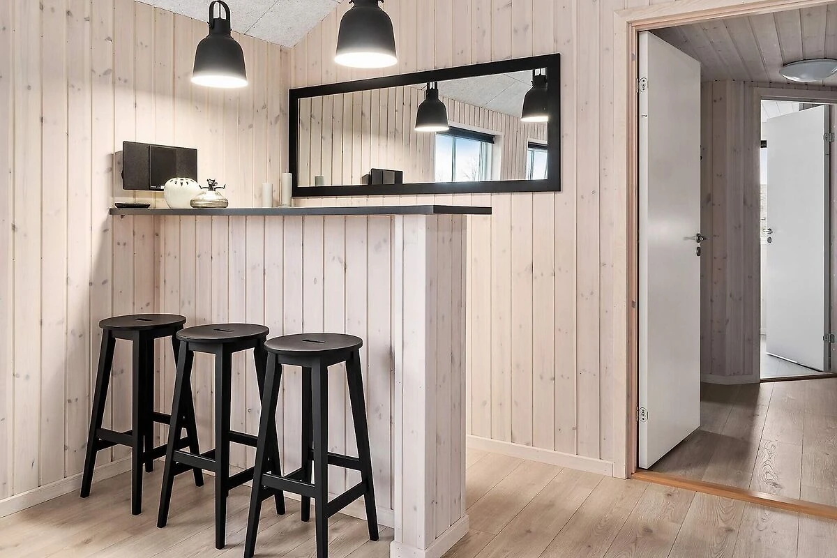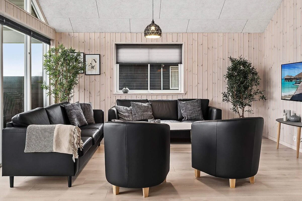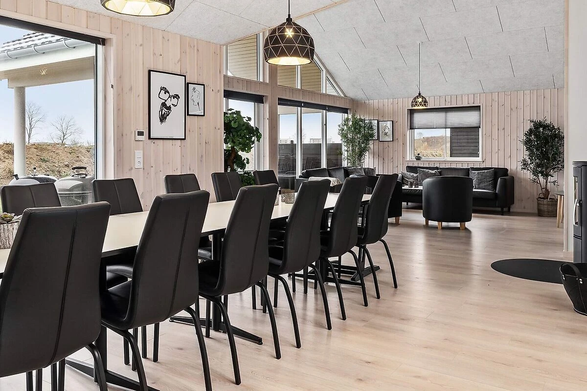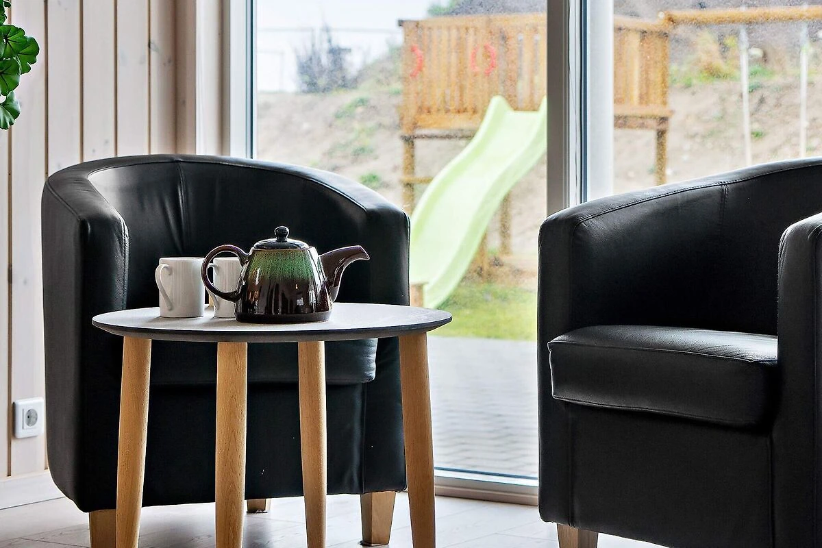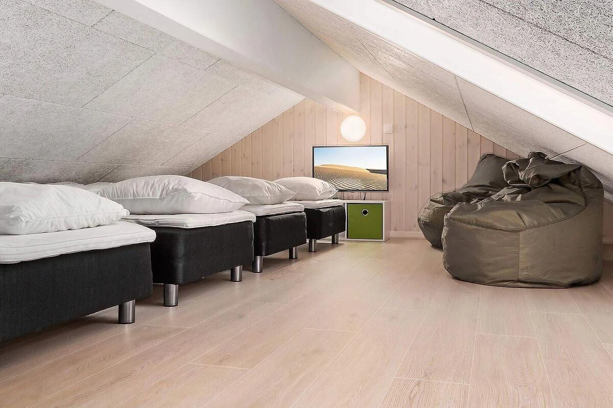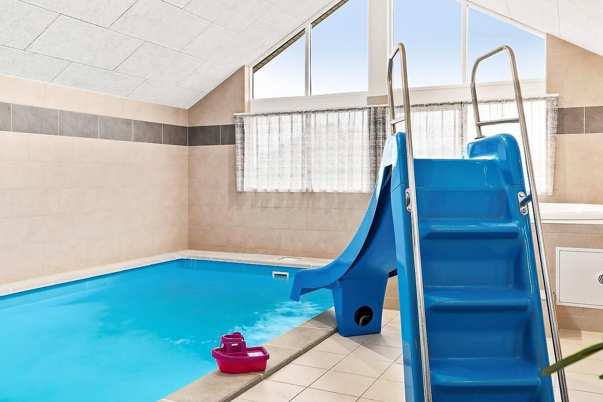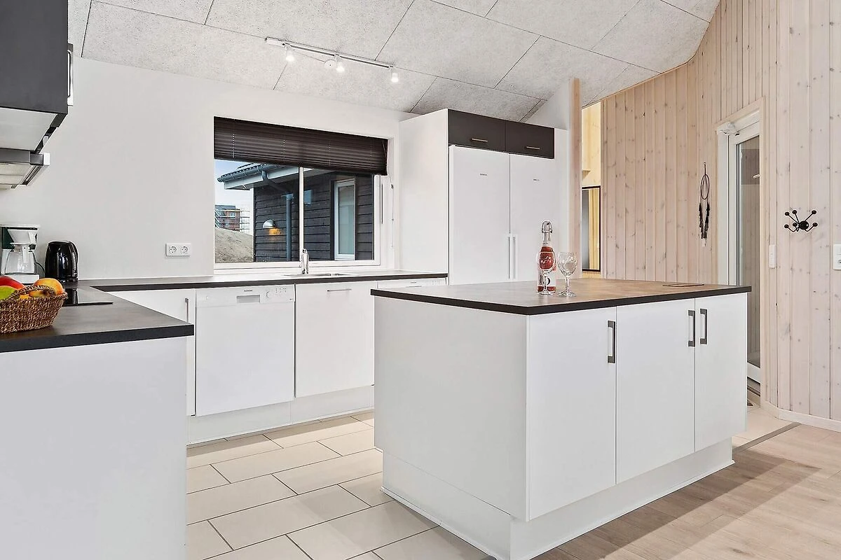 Ob im Pool baden oder Poolbillard spielen – hier ist beides möglich. Das ansprechende Aktivitäts-Ferienhaus liegt nur etwa 900 m vom Sandstrand entfernt und bietet seinen Gästen neben einer modernen Einrichtung auch eine umfangreiche Ausstattung, die perfekt für Familienferien mit mehreren Generationen ist. Poolbereich und Aktivitätsraum werden sicherlich das ganze Jahr über zu den besonders frequentierten Räumen im Haus gehören. Im Poolraum erwartet Sie ein Swimmingpool mit Gegenstromanlage und Wassserrutsche, ein eingebauter Whirlpool für 4-6 Personen sowie eine Sauna und ein Bad. Der Aktivitätsraum ist mit Billardtisch, Kicker, Tischtennis, PS4 und Dartscheibe ausgestattet – für viele vergnügliche Stunden ist also gesorgt. In den Spielpausen kann man dann an der gemütlichen kleinen Bar oder in der Sitzecke entspannen. Im Wohn-Essbereich stehen Stereoanlage, Fernseher, DVD-Spieler, Kaminofen, Sitzgruppe und ein großer Esstisch zur Verfügung. Für Kinder ist ein Hochstuhl vorhanden. Der Essplatz liegt praktischerweise vor dem Küchenbereich, in dem es u.a. je zwei Herde, Kaffeemaschinen und Spülmaschinen gibt. Vier der Schlafzimmer liegen hinter dem Aktivitätsraum, und drei direkt hinter dem Eingangsbereich. Die Einzelbetten können zu Doppelbetten zusammengeschoben werden. Es sind drei Badezimmer vorhanden und das Skanlux-Haus ist durchweg mit Fußbodenheizung ausgestattet. Für ein angenehmes Innenklima sorgt die energiesparende Wärmepumpe. Ein großer Teil der Terrassenfläche ist überdacht. Machen Sie es sich hier in den Gartenmöbeln bequem oder brutzeln Sie ein schönes Abendessen auf dem Grill. Bitte beachten Sie, dass für den Betrieb des Swimmingpools sowie bei Nutzung der Gegenstromanlage, der Sauna und des Whirlpools mit einem erhöhten Verbrauch von Nebenkosten gerechnet werden muss und deshalb fallen je nach Intensität, Nutzung und Jahreszeit erhöhte Extrakosten an. Modellbilder! ***Im Gebiet werden weiterhin neue Häuser errichtet, so dass wir Sie darauf hinweisen möchten, dass es zu Beeinträchtigungen kommen kann.*** *** Wichtige Info: Anstelle der Barzahlung vor Ort, zahlen Sie bitte die Kaution unter Angabe der Buchungsnummer an unseren Servicepartner auf folgende Bankverbindung ein:IBAN: DE58 2175 0000 0165 3631 28, BIC: NOLADE21NOS.*** Keine Vermietung an Jugendgruppen.