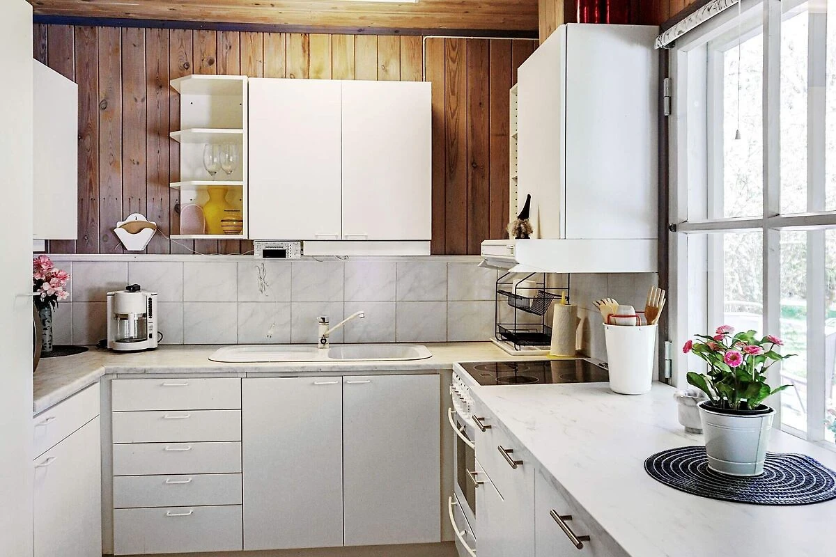 Küche(Kochherd(elektrisch), Dunstabzugshaube, Kaffeemaschine, Mikrowelle, Spülmaschine, Kühl-/Gefrierkombination, Wasser vom Brunnen), Wohn-/Schlafzimmer(TV(schwedische Fernsehsender), Radio), Schlafzimmer(Doppelbett), Schlafzimmer(2x Einzelbett), Badezimmer(Waschbecken, Dusche, Toilette, Waschmaschine), Balkon, Balkon, Heizung(elektrisch), Terrasse(Gartenmöbel, Grill), Terrasse(überdacht), Garten, Parkplatz