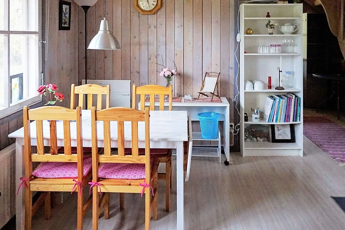 Willkommen in diesem idyllischen Ferienhaus im Süden Gotlands, gelegen inmitten wunderschöner Naturlandschaft! Hier sind Sie ganz gemütlich in einem wohnlichen Ferienhaus untergebracht, mit großer Terrasse und Ausblick ins Grüne. Die ländliche Umgebung bietet sich für schöne Ausflüge an, zudem lockt unweit Gotlands Perle, das herrliche Naturreservat Ekstakusten. Zudem weitere Ausflugsziele in Reichweite, die Sie ebenfalls nicht verpassen sollten! Genießen Sie die ruhige Umgebung in Haus und draußen auf dem Grundstück, ideal um sich vom Alltagsstress zu erholen! Ein attraktiver Gangpfad führt zum Eingang des Hauses, der sich auf der Terrassenfläche befindet, die sich über die ganze Längsseite des Hauses und weiter um die Ecke herum erstreckt. Im Haus betreten Sie sogleich den offenen Wohn-/Essbereich für das Familienleben. Die Küche ist offen integriert und bietet ihrerseits Zugang zu einer überdachten Holzterrasse. Die Küchenausstattung ist umfassend und beinhaltet u.a. gute Arbeitsflächen, Kühl-/Gefrierschrank, E-Herd mit Backofen, Dunstabzugshaube, Kaffeemaschine, Wasserkocher und Toaster. Vom Essbereich aus hat man durch das Fenster schönen Ausblick ins Grüne. Im Parterre befindet sich zudem das Bad mit Toilette, Dusche und kleiner Waschmaschine (Toploder). Über eine Holztreppe erreichen Sie das Dachgeschoss mit zwei Schlafbereichen. Der Weg ins Doppelbett am Ende des Raumes führt an den beiden Einzelbetten vorbei. Außerdem steht in dem offenen Raum auch ein kleiner Schreibtisch bereit. Von hier hat man zudem Zugang zu einem schön abgeschirmten Balkon mit herrlichem Ausblick in die umliegende Natur. Lauschen Sie wahlweise dem Vogelgezwitscher oben vom Balkon oder unten von der Terrasse aus. Die ist ein schönes Reiseziel für Naturliebhaber und alle die gerne in grüner Umgebung entspannen. Zudem haben Sie hier eine gute Ausgangslage für Ausflüge zu Sehenswürdigkeiten, Dienstleistungen, Badeplätzen etc. Im Umkreis von 15 bis 20 Autominuten erreichen Sie verschiedene Strandufer bei z.B. Sandhamn, Västergarn und Kvarnåkershamn oder weiter östlich auch Ljugarn mit feinem Sandstrand und beliebten Restaurants. Machen Sie auch einen Ausflug nach Klintehamn oder zu den Karlsinseln (Karlsöarna) oder genießen Sie ein luxuriöses Mittagessen im attraktiven Djupvik Resort! Wenn Sie sich etwas Luxus gönnen möchten, können Sie auch das Fröjel Resort and Spa (ca. 10 km) oberhalb des Strandes in Sandhamn besuchen. Nehmen Sie die Familie mit in den Tierpark Gotlands Djurpark, der etwa 30 km nördlich liegt. Das Naturreservat Eksta-Kusten ist ein Muss, wenn Sie Gotland besuchen. Diese einzigarige Küstenlandschaft bietet auch ein schönste Gotlands zu den Inseln Stora und Lilla Karlsjö. Bringen Sie einen Picknickkorb mit und finden Sie Ihren eigenen Lieblingsplatz mit einer Aussicht, die Sie nie vergessen werden! Gut zu wissen: Das weitläufige Grundstück wird mit dem Eigentümer gemeinschaftlich genutzt. Großer Parkplatz vor Ort für mehrere Autos, geteilt mit dem Eigentümer. Laufpfad und Fitnessparcour im Freien nur ca. 300 m entfernt. Bettwäsche zu mieten für SEK 150,-/Person. Endreinigung kann vorbestellt werden für SEK 1.000,- zahlbar vor Ort. Die Eigentümerin bietet im Sommer ihr Kunsthandwerk im Café Lye Hantverkscafé an, wo man vielleicht ein hübsches Souvenier oder Mitbringsel findet.