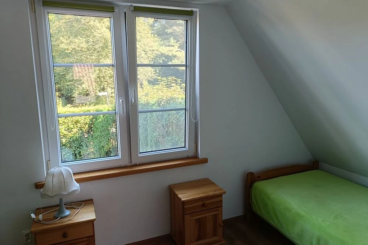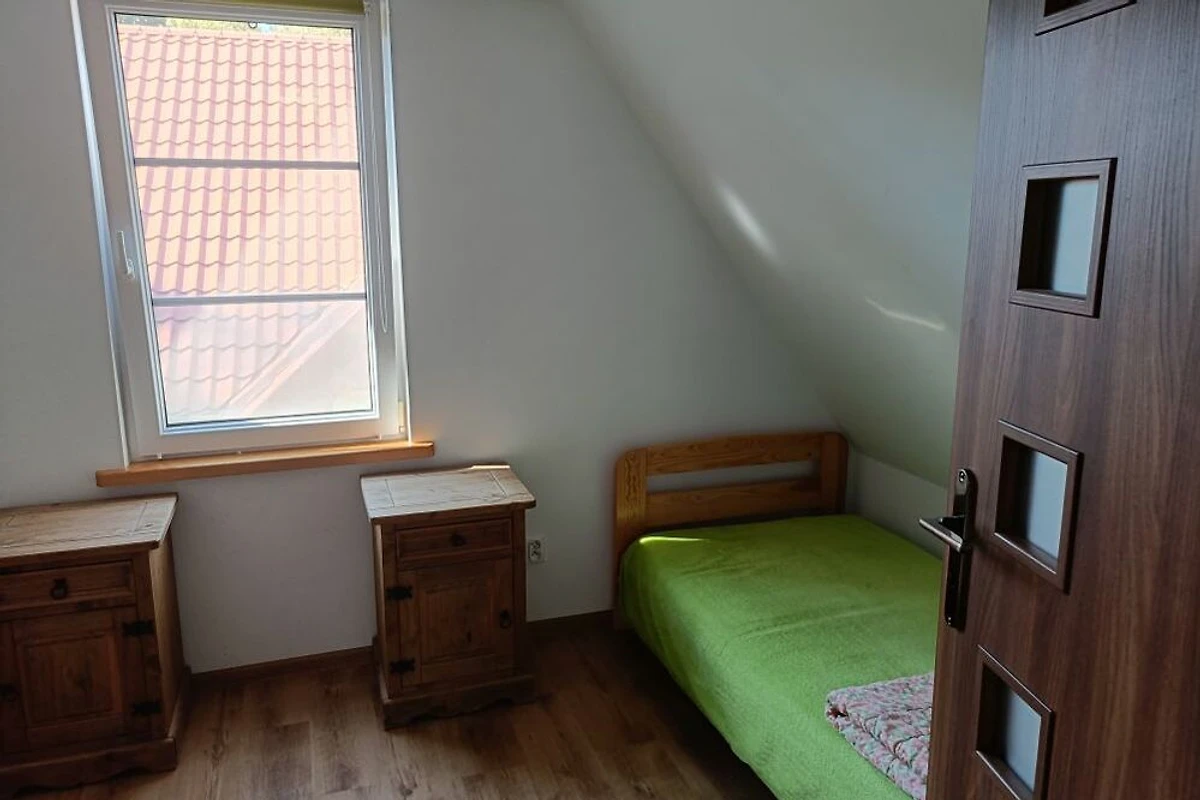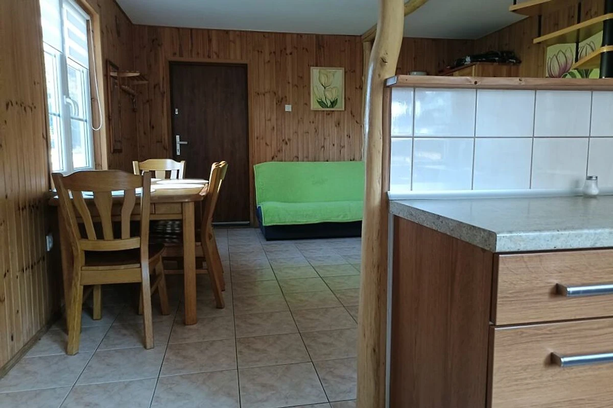 Die Wohnfläche des Hauses beträgt 70 m². Das Haus befindet sich auf einem Grundstück, das direkt an den malerischen See Sasek Wielki grenzt. Angelbegeisterte können vom Steg aus angeln oder ein Ruderboot benutzen. Touristen können mit Kajaks oder einem Tretboot auf dem See fahren. Abends kann man die Zeit beim Grillen genießen und den Sonnenuntergang über dem See bewundern. Den Touristen stehen Tische und Stühle zur Verfügung, die sich in der Nähe der schönen Vegetation befinden. Die an Beeren und Pilzen reichen Wälder bieten die Möglichkeit für zahlreiche Wanderungen und Radtouren. In unmittelbarer Nähe des Hauses befinden sich Geschäfte und Restaurants.