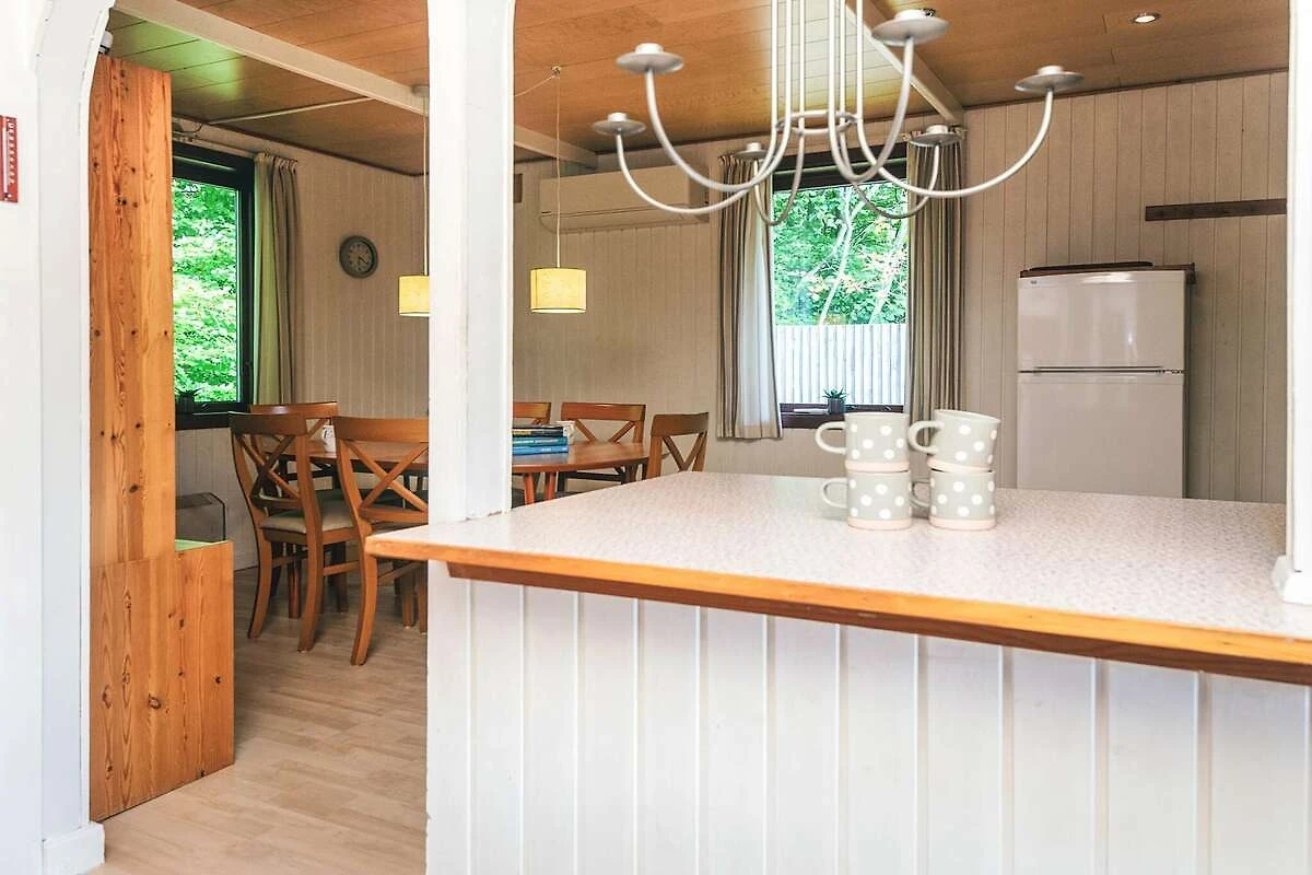 Offene Küche(Kochherd(elektrisch), Dunstabzugshaube, Kaffeemaschine, Mikrowelle, Kühlschrank(+ Gefrierfach)), Wohn-/Schlafzimmer(TV(Kabel), CD-Spieler, Stereoanlage), Schlafzimmer(Doppelbett, Kinderbett), Schlafzimmer(2x Einzelbett), Schlafzimmer(2x Etagenbett), Badezimmer(Fußbodenheizung)(Badewanne oder Dusche, Waschbecken, Toilette, Waschmaschine), Carport, Heizung(elektrisch), Terrasse, Terrasse(überdacht), Garten, Grill, Spielgeräte