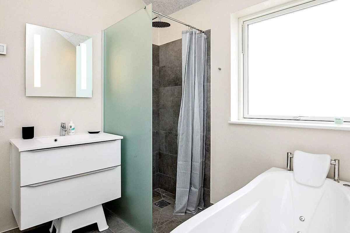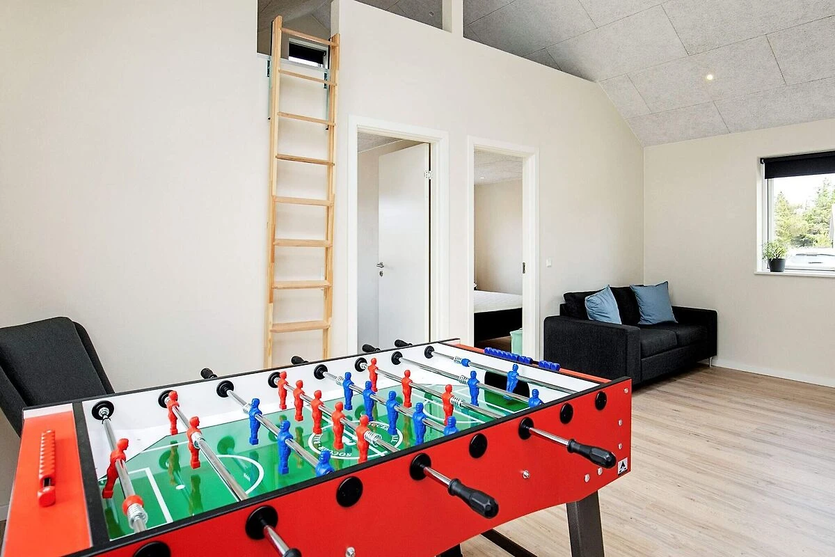 Hell und einladend präsentiert sich dieses geräumige Ferienhaus bei Vorupør, das außer dem Whirlpool in einem der beiden Bäder auch noch weitere ansprechende Details zu bieten hat. Die Einrichtung ist durchgehend modern und wohnlich gestaltet, das Mobiliar sowie die technische Ausstattung sind zeitgemäß und umfassend. Für den Freizeitspaß gibt es einen großen Aktivitätsraum mit Tischtennis, Tischkicker etc. Das Haus hat vier Schlafzimmer mit jeweils zwei Betten sowie ein großes Loft mit zwei weiteren Schlafplätzen. Es gibt zwei Badezimmer, beide mit Dusche und Fußbodenheizung, eines zudem mit Whirlpool. Praktische Hilfsmittel wie Waschmaschine und Wäschetrockner sind ebenfalls vorhanden. Das Haus wird mittels einer energieeffizienten Wärmepumpe beheizt. Keine Vermietung an Jugendgruppen erwünscht!Kurz vor Ihrem Ankunftsdatum kann eine rückzahlbare Kaution erhoben werden. Die Kaution stellt sicher, dass Ihr Aufenthalt reibungslos verläuft, und deckt eventuelle Zusatzleistungen oder Verbrauchskosten ab.Diese Kaution deckt den Verbrauch von Nebenkosten während Ihres Aufenthalts sowie zusätzliche in Anspruch genommene Leistungen ab.Der endgültige Betrag wird anhand der tatsächlichen Zählerstände und Nutzung zusätzlicher Services angepasst. Ein etwaiger Restbetrag wird Ihnen innerhalb von 21 Tagen nach dem Check-out zurückerstattet.Die Kaution dient lediglich als Vorauszahlung für Leistungen, die Sie ohnehin bezahlen würden, und ermöglicht einen reibungslosen Ablauf Ihres Aufenthalts und Check-outs.