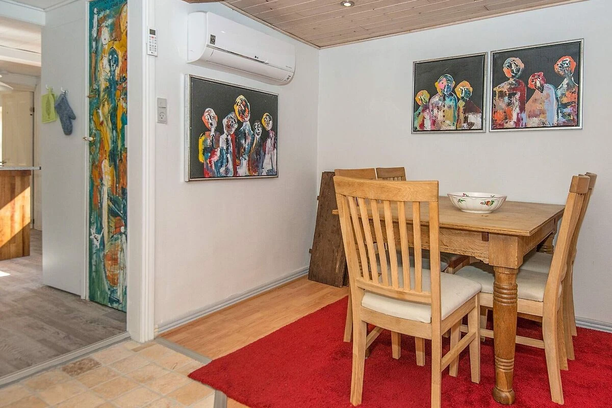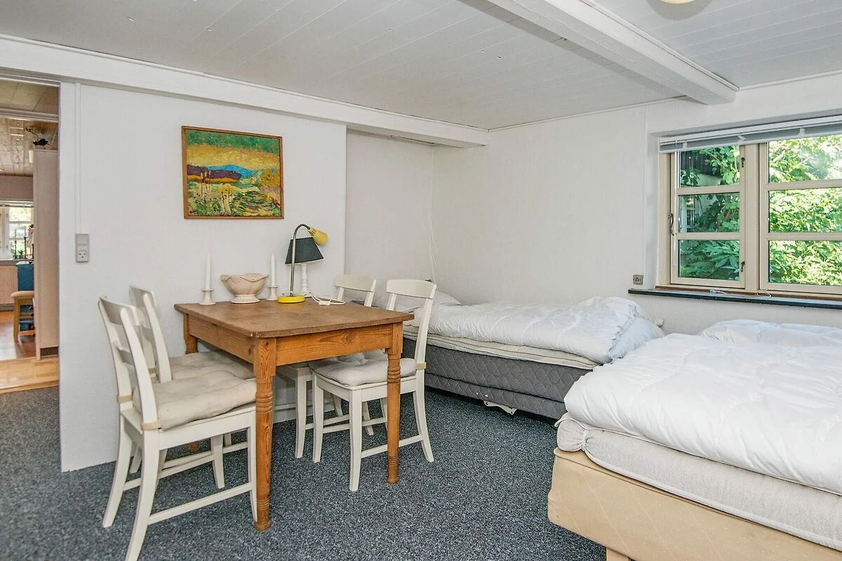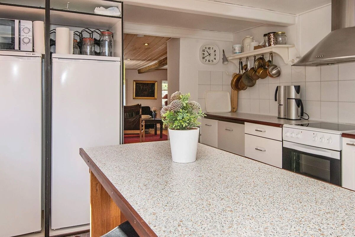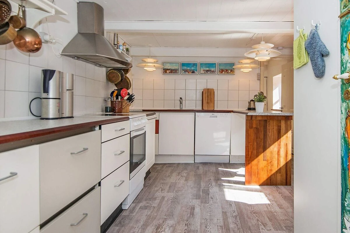 Offene Küche(Kochherd(elektrisch), Dunstabzugshaube, Mikrowelle, Spülmaschine, Kühlschrank, Tiefkühlschrank(60-99L)), Wohn-/Schlafzimmer(TV(Kabel, Deutsch Fernsehsender, dänische Fernsehsender), CD-Spieler, Stereoanlage), Schlafzimmer(Doppelbett), Schlafzimmer(Einzelbett, Doppelbett), Badezimmer(Trockner, Badewanne oder Dusche, Waschbecken, Toilette, Waschmaschine), Heizung(elektrisch), Terrasse, Luft-Luft-Wärmepumpe