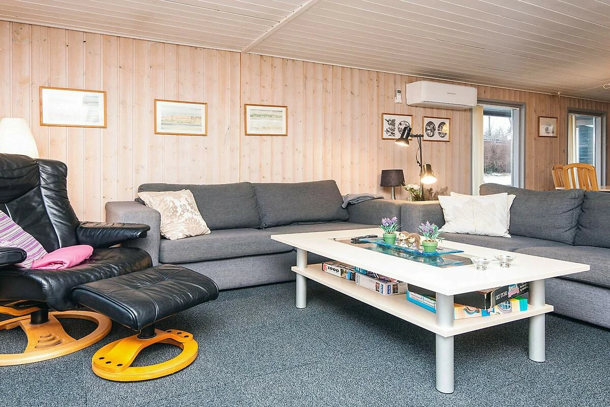 , offene Küche(Kochherd(elektrisch), Dunstabzugshaube, Kaffeemaschine, Mikrowelle, Spülmaschine, Kühlschrank, Tiefkühlschrank(60-99L)), Wohn-/Schlafzimmer(TV(Kabel, Deutsch Fernsehsender, dänische Fernsehsender)), Schlafzimmer(Doppelbett), Schlafzimmer(2x Einzelbett), Badezimmer(Fußbodenheizung)(Badewanne oder Dusche, Waschbecken, Toilette), Heizung(elektrisch), Terrasse, Garten, Grill, Luft-Luft-Wärmepumpe