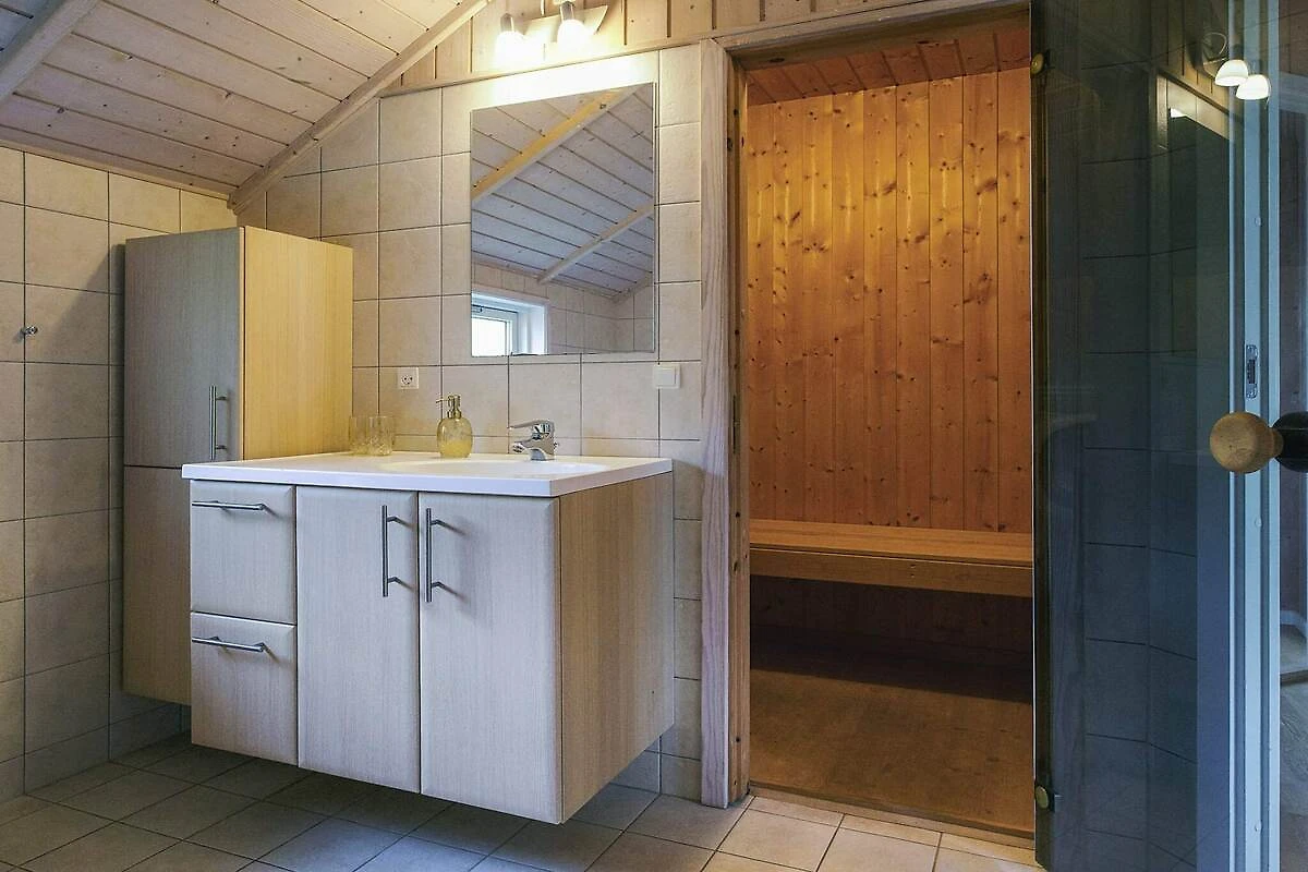 , offene Küche(Kochherd(elektrisch), Dunstabzugshaube, Kaffeemaschine, Mikrowelle, Spülmaschine, Kühl-/Gefrierkombination), Wohn-/Schlafzimmer, Schlafzimmer(Doppelbett), Schlafzimmer(Doppelbett), Schlafzimmer(2x Einzelbett), Badezimmer(Fußbodenheizung)(Trockner, Badewanne oder Dusche, Waschbecken, Toilette, Waschmaschine), Badezimmer(Waschbecken, Toilette), Whirlwanne(im Innenbereich, erwärmt, 2 Personen), Sauna(im Innenbereich, erwärmt, 2 Personen), Heizung(elektrisch), Terrasse, Grill, Luft-Luft-Wärmepumpe