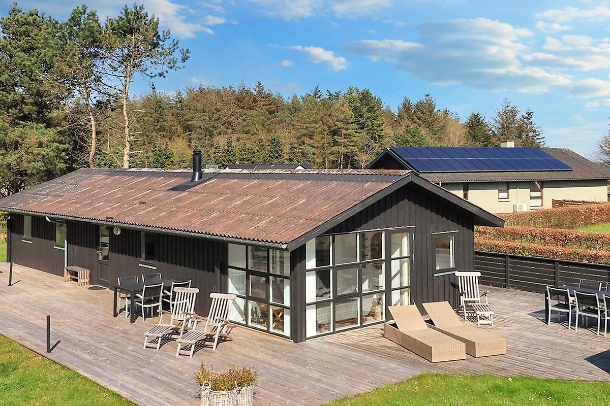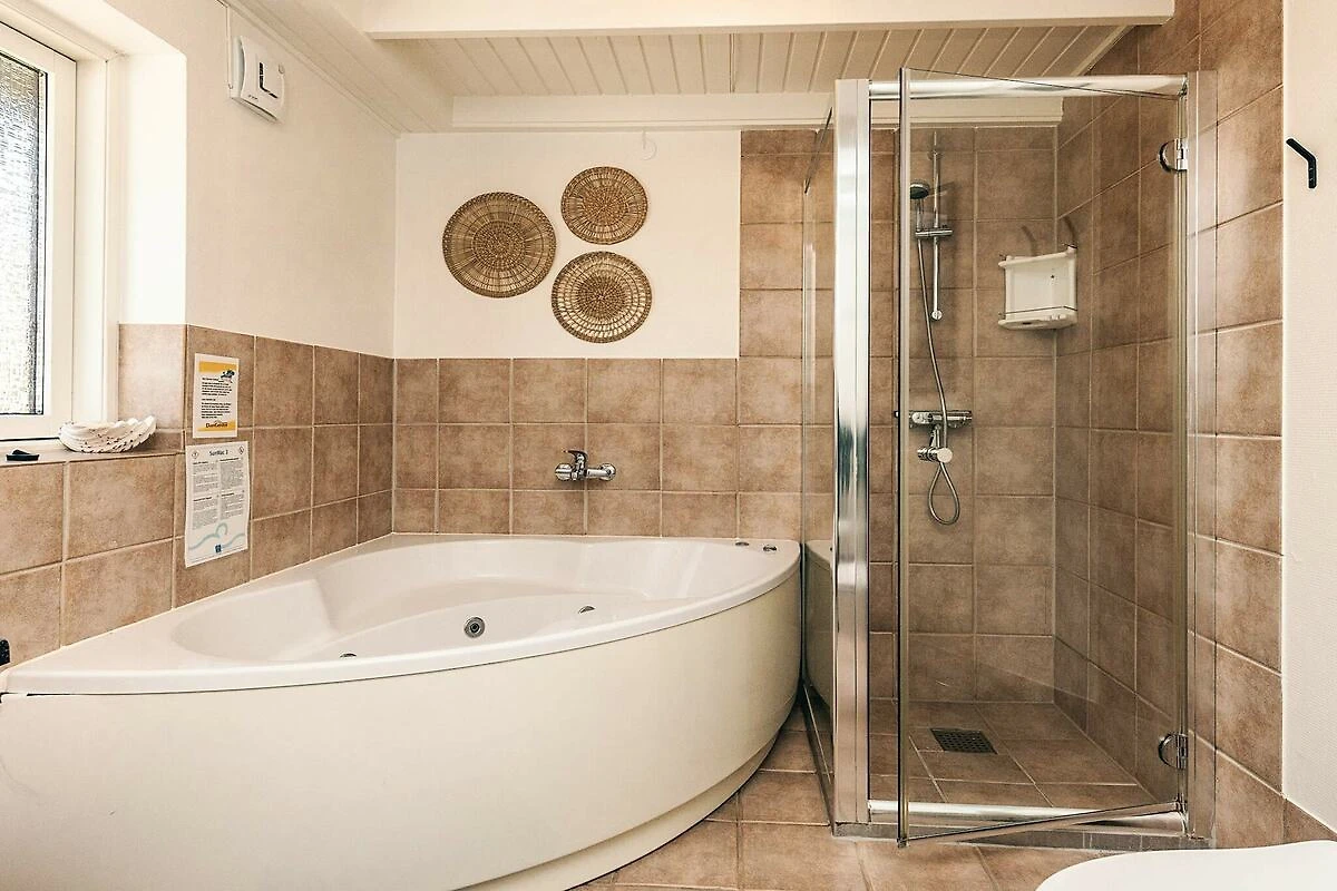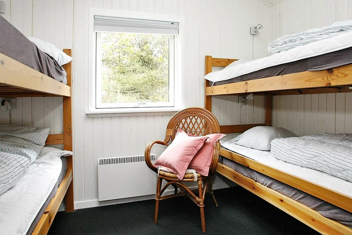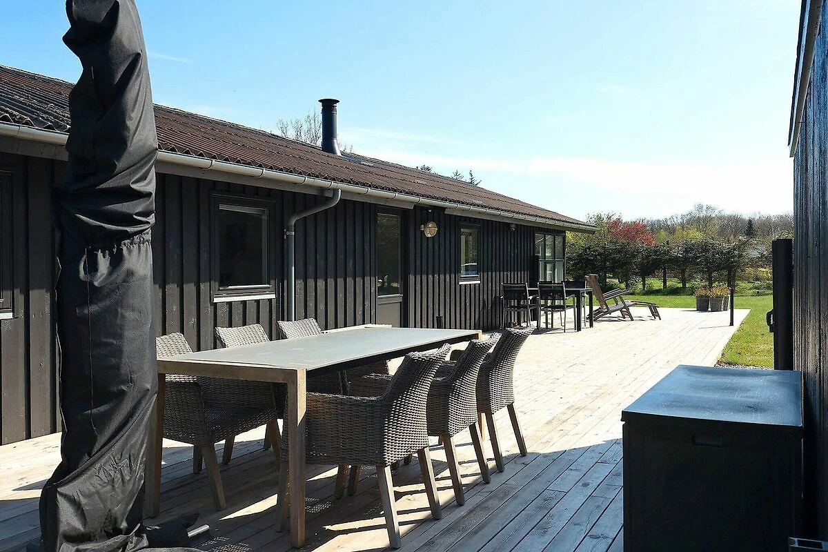 , Wohnzimmer(2x Einzelklappbett ), offene Küche(Kochherd(elektrisch), Dunstabzugshaube, Kaffeemaschine, Mikrowelle, Spülmaschine, Kühl-/Gefrierkombination, Trockner, Waschmaschine), Wohn-/Schlafzimmer(29 m2)(TV(Kabel, Deutsch Fernsehsender, dänische Fernsehsender), Stereoanlage), Schlafzimmer(Doppelbett, Babybett, Hochstuhl), Schlafzimmer(2x Einzelbett), Schlafzimmer(4x Etagenbett), Badezimmer(Fußbodenheizung)(Badewanne oder Dusche, Waschbecken, Toilette), Badezimmer(Fußbodenheizung)(Waschbecken, Dusche, Toilette), Carport, Whirlwanne(im Innenbereich, erwärmt, 2 Personen), Sauna(im Innenbereich, erwärmt, 3 Personen), Heizung(elektrisch), Terrasse, Gartenmöbel, Spielgeräte, Luft-Luft-Wärmepumpe