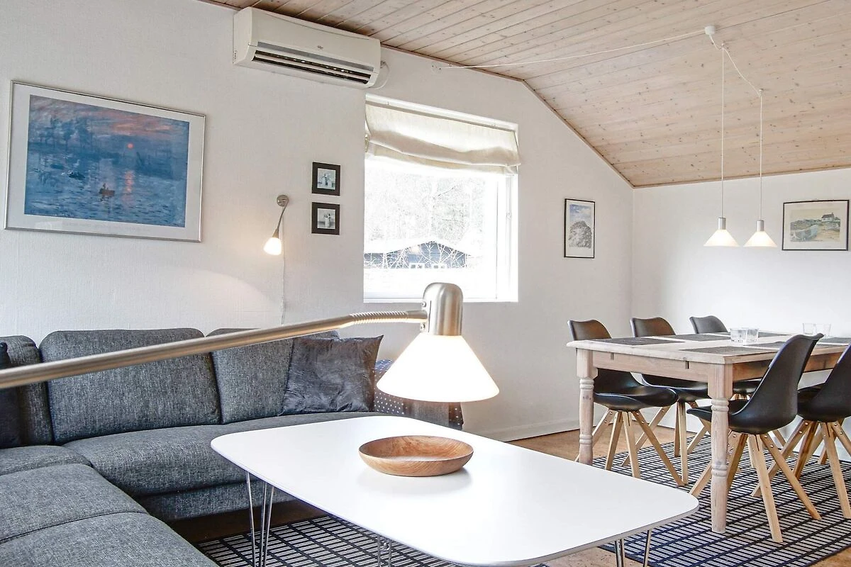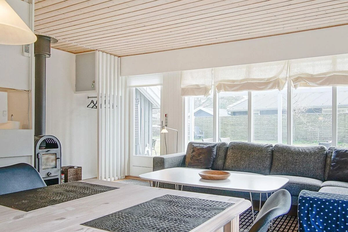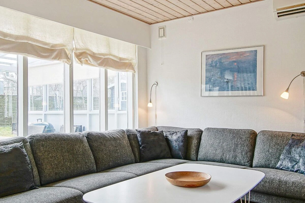 Offene Küche(Kochherd(elektrisch), Dunstabzugshaube, Kaffeemaschine, Mikrowelle, Spülmaschine, Kühlschrank(+ Gefrierfach), Waschmaschine), Wohn-/Schlafzimmer(30 m2)(TV(Satellit, Deutsch Fernsehsender, dänische Fernsehsender), Radio), Schlafzimmer(Doppelbett, Kinderbett, Hochstuhl), Schlafzimmer(Doppelbett), Schlafzimmer(2x Einzelbett), Badezimmer(Fußbodenheizung)(Waschbecken, Dusche, Toilette), Heizung(elektrisch), Terrasse, Terrasse(überdacht), Gartenmöbel, Luft-Luft-Wärmepumpe
