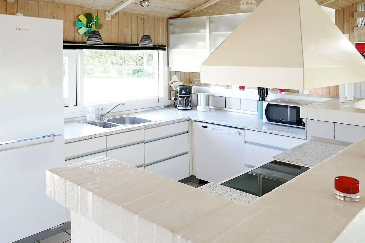 , Wohnzimmer(Doppelklappbett ), Wohnzimmer(Einzelklappbett ), offene Küche(Kochherd(elektrisch), Dunstabzugshaube, Kaffeemaschine, Mikrowelle, Spülmaschine, Kühl-/Gefrierkombination, Trockner, Waschmaschine), Wohn-/Schlafzimmer(45 m2)(TV(Kabel, Deutsch Fernsehsender, dänische Fernsehsender)), Schlafzimmer(Doppelbett, Babybett, Hochstuhl), Schlafzimmer(Doppelbett), Schlafzimmer(4x Etagenbett), Badezimmer(Fußbodenheizung)(Badewanne oder Dusche, Waschbecken, Toilette), Badezimmer(Fußbodenheizung)(Badewanne oder Dusche, Toilette), TV(Kabel, Deutsch Fernsehsender, dänische Fernsehsender), Badewanne oder Dusche, Waschbecken, Whirlwanne(im Innenbereich, erwärmt, 3 Personen), Sauna(im Innenbereich, erwärmt, 4 Personen), Toilette, Heizung(elektrisch), Terrasse(überdacht), Gartenmöbel, Grill, Pool(im Innenbereich, 150 m2), Spielgeräte, Luft-Wasser-Wärmepumpe