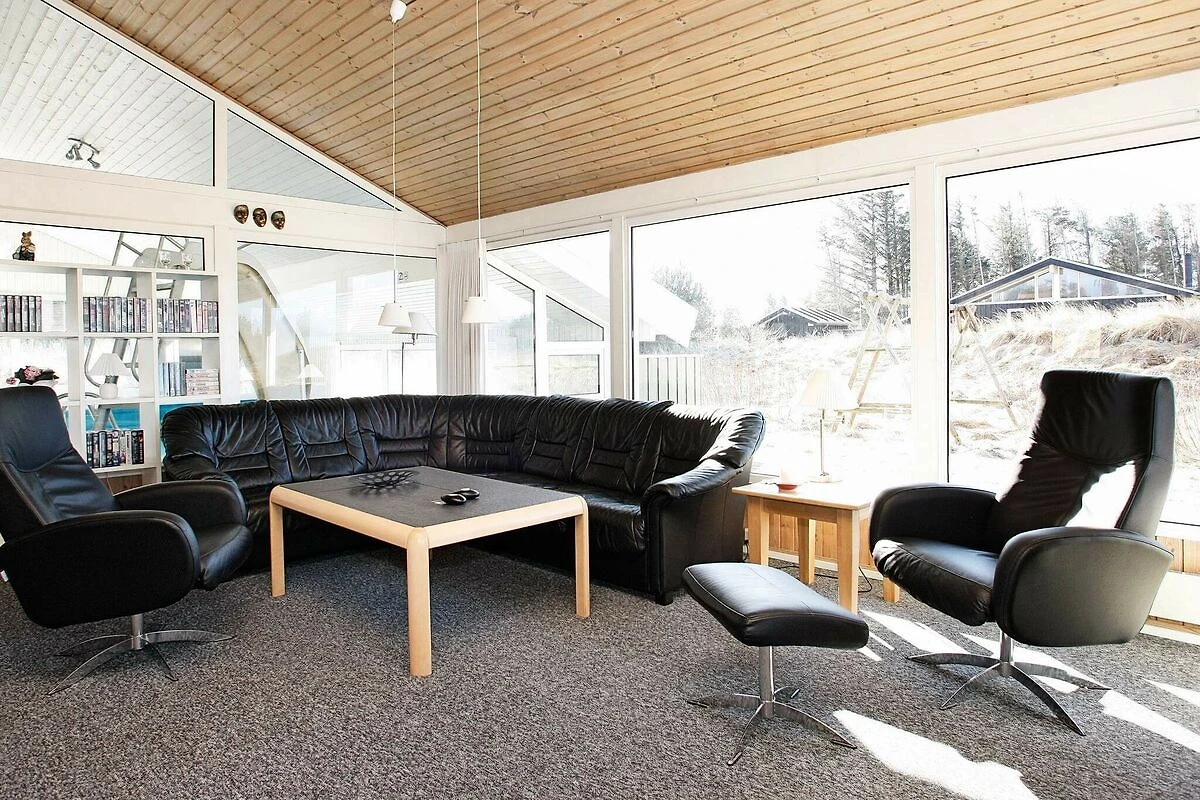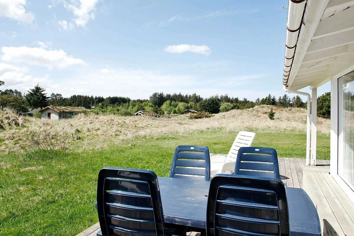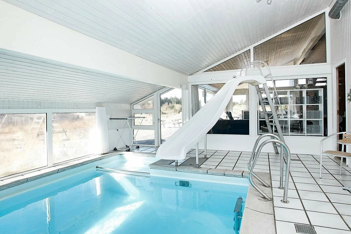 Umfangreich ausgestattetes Ferienhaus mit Pool, Whirlpool und Sauna für erholsame Urlaubstage und Badespaß mit der ganzen Familie. Das Ferienhaus steht auf einem weitläufigen Naturgrundstück inmitten der hügeligen Dünenlandschaft. Im Haus wurde ein energieeffizientes Belüftungssystem (Genvex) zur Erwärmung des Warmwassers installiert. Das Wasser im Pool wird zudem mittels umweltfreundlicher Solarenergie erwärmt. Im Poolbereich ist auch ein Whirlpool untergebracht, zudem hat man von hier direkten Zugang zu einem großen Badezimmer mit Fußbodenheizung und Sauna im Anschluss daran. Das 18 m² große Schwimmbecken verfügt über eine Wasserrutsche und ein 2 m² großes Kinderbecken. Zweites Badezimmer im Haus, ebenfalls mit Dusche/WC und angenehmer Fußbodenheizung. Das Ferienhaus ist geräumig und bietet auch ausreichend Platz für zwei befreundete Familien, da es 4 geräumige Schlafzimmer und 2 Hemse oben unter der Dachschräge gibt. Somit stehen insgesamt 12 Schlafplätze bereit, vier davon oben auf dem Hems. Diese bieten sich jedoch nur für Kinder im Schulalter an. Auf einem Hems stehen auch ein Fernseher sowie DVD- und Videospieler. Das Ferienhaus ist zeitgemäß ausgestattet und wohnlich eingerichtet. Im offenen Küchen-/Wohnbereich für das Familienleben steht auch ein Holzofen für kühlere Abende bereit. Die Küche wurde 2010 erneuert und ist u.a. mit Geschirrspüler, Gefrierschrank und Mikrowelle ausgestattet. Im Außenbereich findet man sowohl eine offene als auch eine überdachte Terrassenfläche mit Grill und Sitzgelegenheiten. Zum Hausinventar gehören außerdem eine umfassende technische Ausstattung, u.a. drei Fernseher, Waschmaschine und Wäschetrockner. Familienfreundliches Zubehör wie Kinderbett, und Hochstuh. Keine Vermietung an Jugendgruppen erwünscht!Kurz vor Ihrem Ankunftsdatum kann eine rückzahlbare Kaution erhoben werden. Die Kaution stellt sicher, dass Ihr Aufenthalt reibungslos verläuft, und deckt eventuelle Zusatzleistungen oder Verbrauchskosten ab.Diese Kaution deckt den Verbrauch von Nebenkosten während Ihres Aufenthalts sowie zusätzliche in Anspruch genommene Leistungen ab.Der endgültige Betrag wird anhand der tatsächlichen Zählerstände und Nutzung zusätzlicher Services angepasst. Ein etwaiger Restbetrag wird Ihnen innerhalb von 21 Tagen nach dem Check-out zurückerstattet.Die Kaution dient lediglich als Vorauszahlung für Leistungen, die Sie ohnehin bezahlen würden, und ermöglicht einen reibungslosen Ablauf Ihres Aufenthalts und Check-outs.