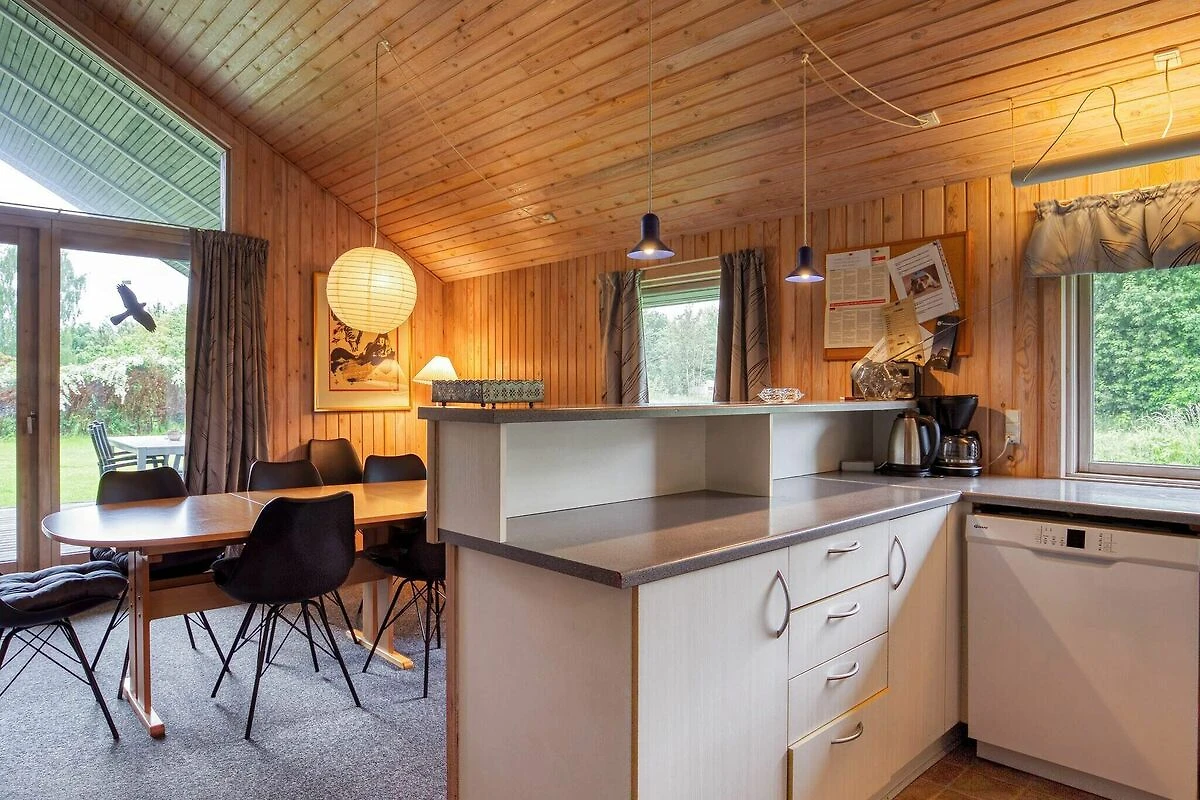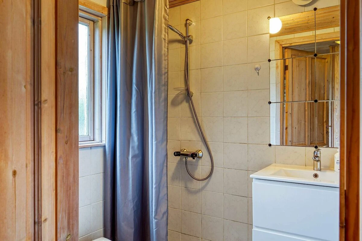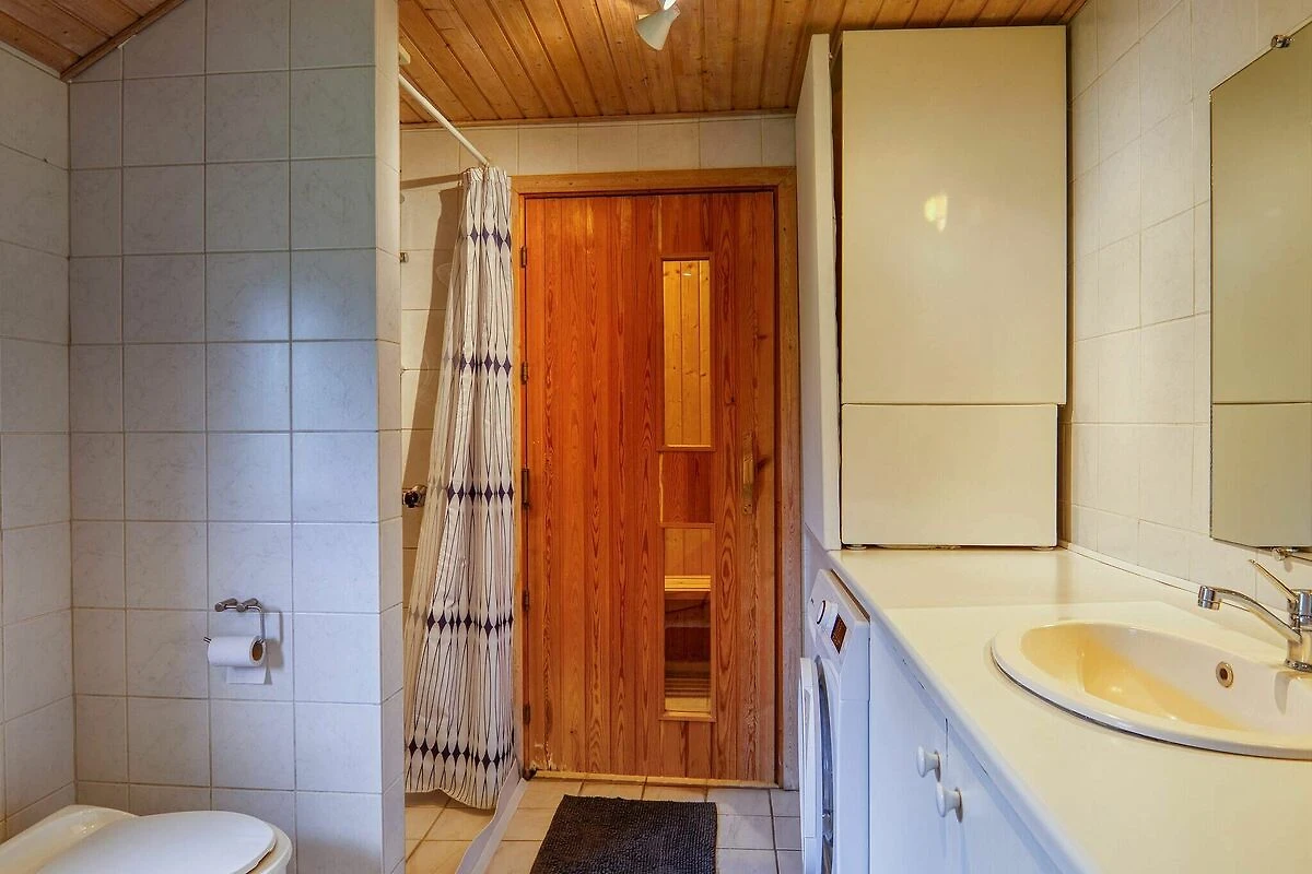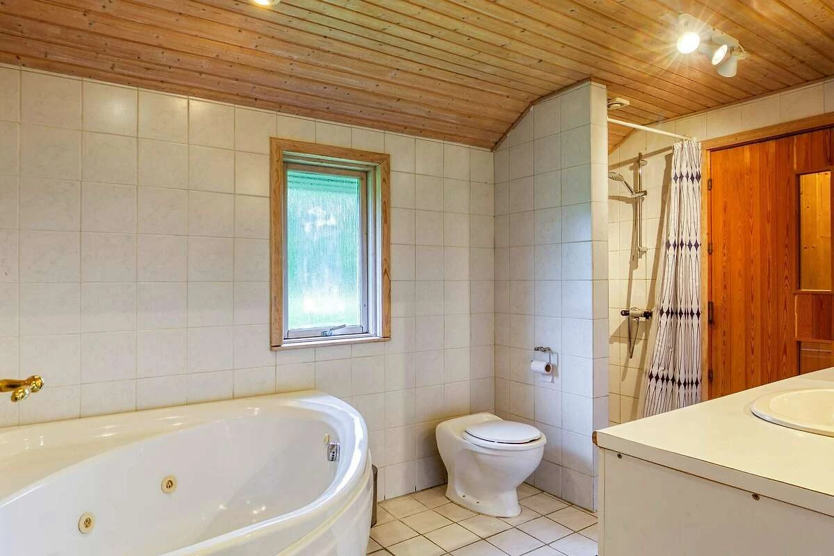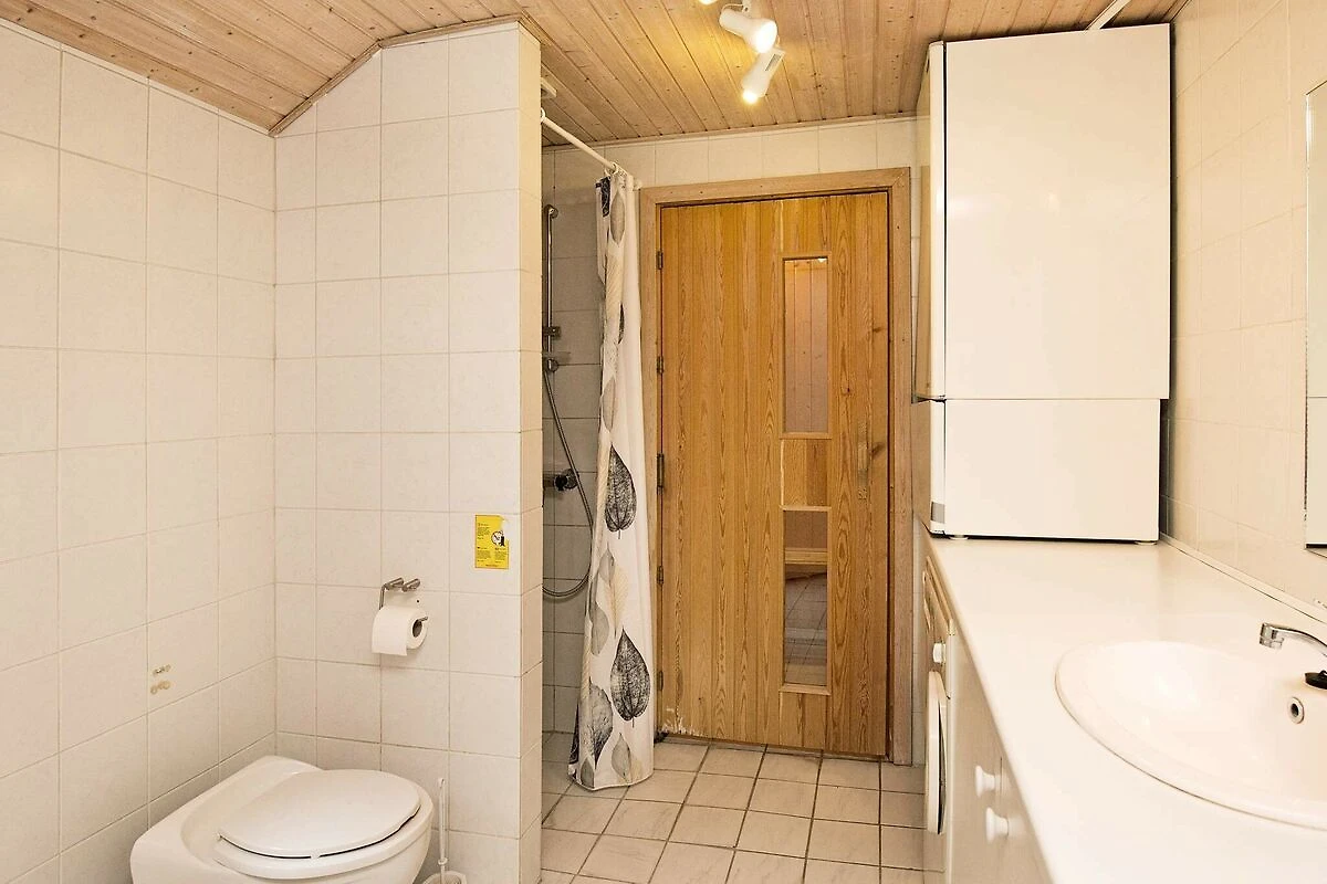 Offene Küche(Kochherd(elektrisch), Dunstabzugshaube, Kaffeemaschine, Mikrowelle, Spülmaschine, Kühlschrank(+ Gefrierfach), Waschmaschine), Wohn-/Schlafzimmer(TV(Satellit), Radio, CD-Spieler), Schlafzimmer(Doppelbett), Schlafzimmer(Doppelbett), Schlafzimmer(2x Etagenbett), Badezimmer(Badewanne oder Dusche, Waschbecken, Toilette), Badezimmer(Fußbodenheizung)(Badewanne oder Dusche, Waschbecken, Toilette), Empore(4x Einzelklappbett ), Spielkonsole, Whirlwanne(im Innenbereich, erwärmt), Sauna(im Innenbereich, erwärmt), Heizung(elektrisch), Terrasse(überdacht), Gartenmöbel, Liegen, Grill, Spielgeräte