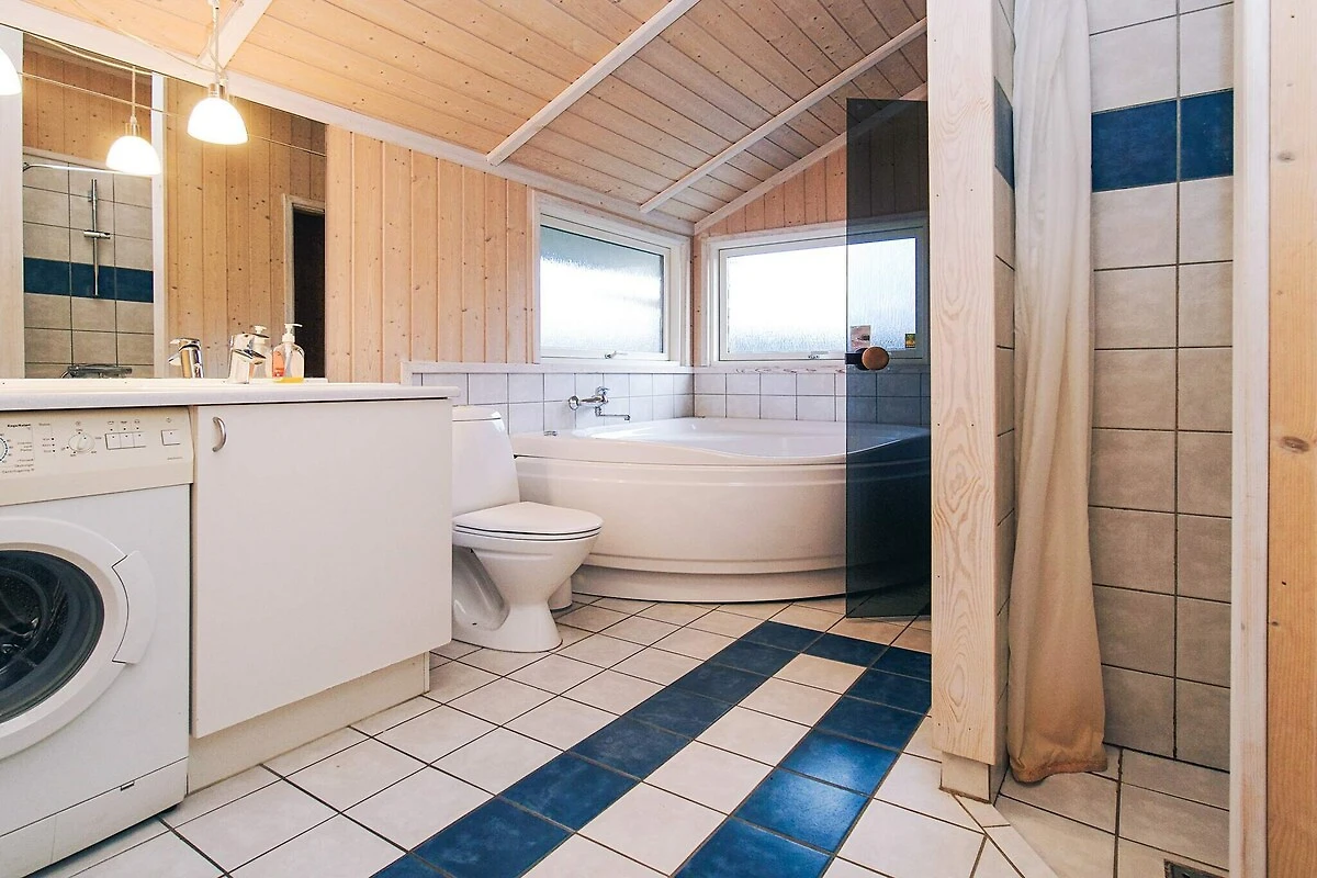 , Aufenthaltsraum(Einzelklappbett ), offene Küche(Kochherd(elektrisch), Kaffeemaschine, Mikrowelle, Spülmaschine, Kühl-/Gefrierkombination, Waschmaschine), Wohn-/Schlafzimmer(TV(Satellit, Deutsch Fernsehsender, dänische Fernsehsender), DVD-Spieler, CD-Spieler, Stereoanlage, Hochstuhl), Schlafzimmer(Doppelbett, Babybett), Schlafzimmer(2x Einzelbett), Schlafzimmer(Doppelklappbett ), Badezimmer(Fußbodenheizung)(Badewanne oder Dusche, Waschbecken, Toilette), Carport, Whirlwanne(im Innenbereich), Sauna(im Innenbereich, erwärmt), Heizung(elektrisch), Terrasse(50 m2), Terrasse(überdacht, 13 m2), Spielgeräte