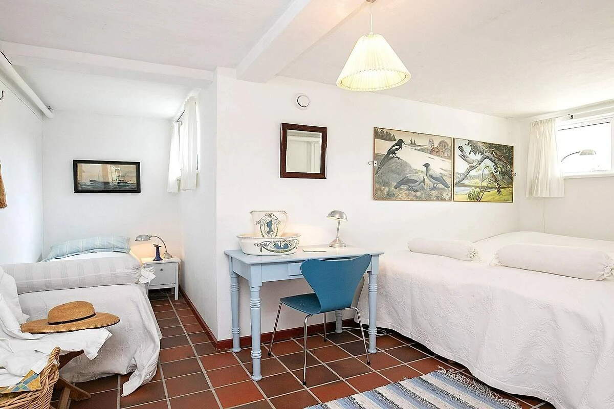 , Küche(Kochherd(elektrisch), Dunstabzugshaube, Kaffeemaschine, Mikrowelle, Spülmaschine, Kühl-/Gefrierkombination, Waschmaschine), Wohn-/Schlafzimmer(TV(dänische Fernsehsender), Kaminofen), Schlafzimmer(Doppelbett), Schlafzimmer(Doppelbett), Schlafzimmer(Doppelbett), Schlafzimmer(Doppelbett), Badezimmer(Fußbodenheizung)(Badewanne oder Dusche, Waschbecken, Toilette), Badezimmer(Fußbodenheizung)(Badewanne oder Dusche, Waschbecken, Toilette), Terrasse, Erdwärme, Luft-Luft-Wärmepumpe