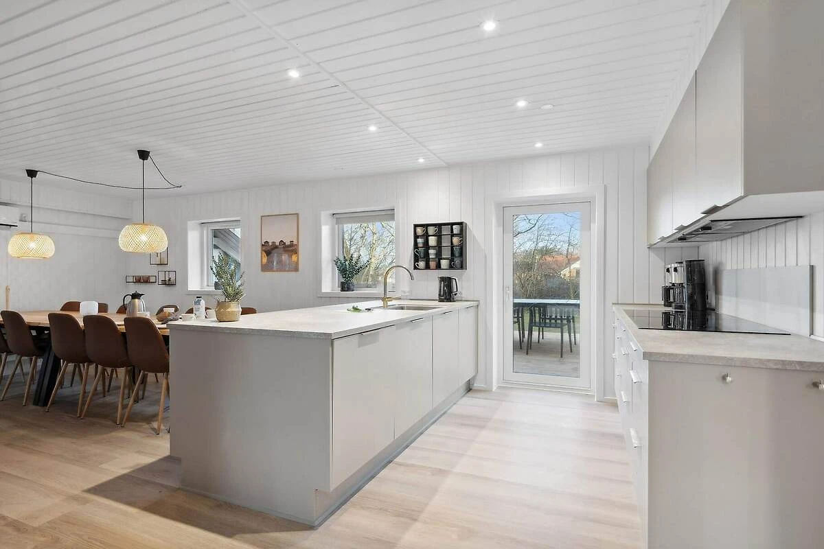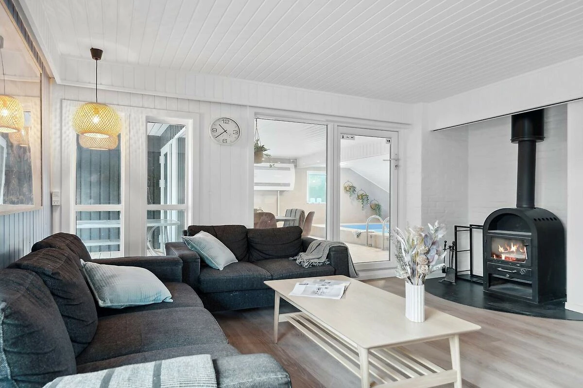 Willkommen in diesem wunderschönen Sommerhaus in Fjellerup, wo Sie Meeresblick, privaten Wellnessbereich und viel Platz für die ganze Familie genießen können. Nur 100 Meter vom Strand entfernt sind die perfekten Voraussetzungen für einen Urlaub geschaffen, in dem Sie Entspannung, Aktivitäten und unvergessliche Momente in Meeresnähe verbinden können. Meeresblick Überdachte Terrasse mit Bar und Lounge Innenpool und Außenwellness Das Ferienhaus ist ideal für Familien und Freundesgruppen eingerichtet, die hohen Komfort und gute Möglichkeiten für gemeinsames Beisammensein wünschen. Im Haupthaus finden Sie 4 geräumige Schlafzimmer und 3 Badezimmer, sodass jeder genügend Platz hat. Außerdem gibt es ein gemütliches Nebengebäude mit 2 zusätzlichen Schlafzimmern, das etwas mehr Privatsphäre bietet – perfekt für Teenager, Großeltern oder ein Paar, das sich zurückziehen möchte. Das Herz des Hauses ist der einladende Poolbereich, in dem sich Groß und Klein das ganze Jahr über austoben können. Wenn Körper und Geist Ruhe brauchen, können Sie sich im Innenwhirlpool verwöhnen oder auf die Terrasse in den warmen Außenwhirlpool unter freiem Himmel wechseln. Draußen erwarten Sie drei wunderschöne Terrassen, von denen einige teilweise überdacht sind – ideal für den Morgenkaffee, Sonnenbaden oder gemütliche Grillabende. Unter einer der Überdachungen befindet sich eine stimmungsvolle Bar mit Lounge-Bereich, wo Sie sich zu entspannten Stunden treffen können. Außerdem steht ein einladender Außenwhirlpool bereit, der das Ferienerlebnis perfekt abrundet. Der Garten ist eingezäunt, sodass Kinder sicher spielen oder auf dem Trampolin springen können, während die Erwachsenen den Urlaub in ruhiger Umgebung genießen. Fjellerup ist bekannt für seinen breiten, kinderfreundlichen Strand, seine gemütlichen Eishäuser und die wunderschöne Natur. In der Umgebung gibt es viele Möglichkeiten für Rad- und Wandertouren, und entlang der Küste können Sie Fischerei, lokale Hofläden und kleine Hafenmilieus entdecken. Ein Urlaub in diesem Haus bietet Ihnen das Beste aus beiden Welten: Ruhe und Privatsphäre – und gleichzeitig die Nähe zu allem, was Djursland zu einem der beliebtesten Feriengebiete Dänemarks macht. HINWEIS: Die Bilder sind Demobilder, da das Haus renoviert wirdKurz vor Ihrem Ankunftsdatum kann eine rückzahlbare Kaution erhoben werden. Die Kaution stellt sicher, dass Ihr Aufenthalt reibungslos verläuft, und deckt eventuelle Zusatzleistungen oder Verbrauchskosten ab.Diese Kaution deckt den Verbrauch von Nebenkosten während Ihres Aufenthalts sowie zusätzliche in Anspruch genommene Leistungen ab.Der endgültige Betrag wird anhand der tatsächlichen Zählerstände und Nutzung zusätzlicher Services angepasst. Ein etwaiger Restbetrag wird Ihnen innerhalb von 21 Tagen nach dem Check-out zurückerstattet.Die Kaution dient lediglich als Vorauszahlung für Leistungen, die Sie ohnehin bezahlen würden, und ermöglicht einen reibungslosen Ablauf Ihres Aufenthalts und Check-outs.