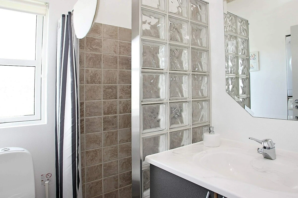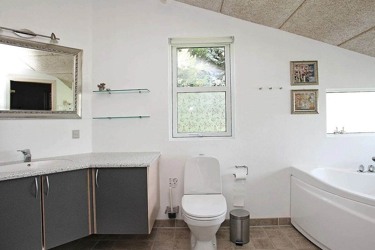 , offene Küche(Kochherd(elektrisch), Dunstabzugshaube, Kaffeemaschine, Mikrowelle, Spülmaschine, Kühlschrank, Tiefkühlschrank(60-99L), Trockner, Waschmaschine), Wohn-/Schlafzimmer(TV(Kabel, Deutsch Fernsehsender, dänische Fernsehsender), DVD-Spieler, CD-Spieler, Stereoanlage, Hochstuhl), Schlafzimmer(Doppelbett, Babybett), Schlafzimmer(Doppelbett), Schlafzimmer(Doppelbett, Etagenbett), Schlafzimmer(2x Einzelbett), Badezimmer(Fußbodenheizung)(Badewanne oder Dusche, Waschbecken, Toilette), Badezimmer(Fußbodenheizung)(Badewanne oder Dusche, Waschbecken, Toilette), Whirlwanne(im Innenbereich, erwärmt, 2 Personen), Sauna(im Innenbereich, erwärmt, 4 Personen), Heizung(elektrisch), Terrasse, Terrasse(überdacht), Grill, Spielgeräte, Fischreinigungstisch, Luft-Luft-Wärmepumpe
