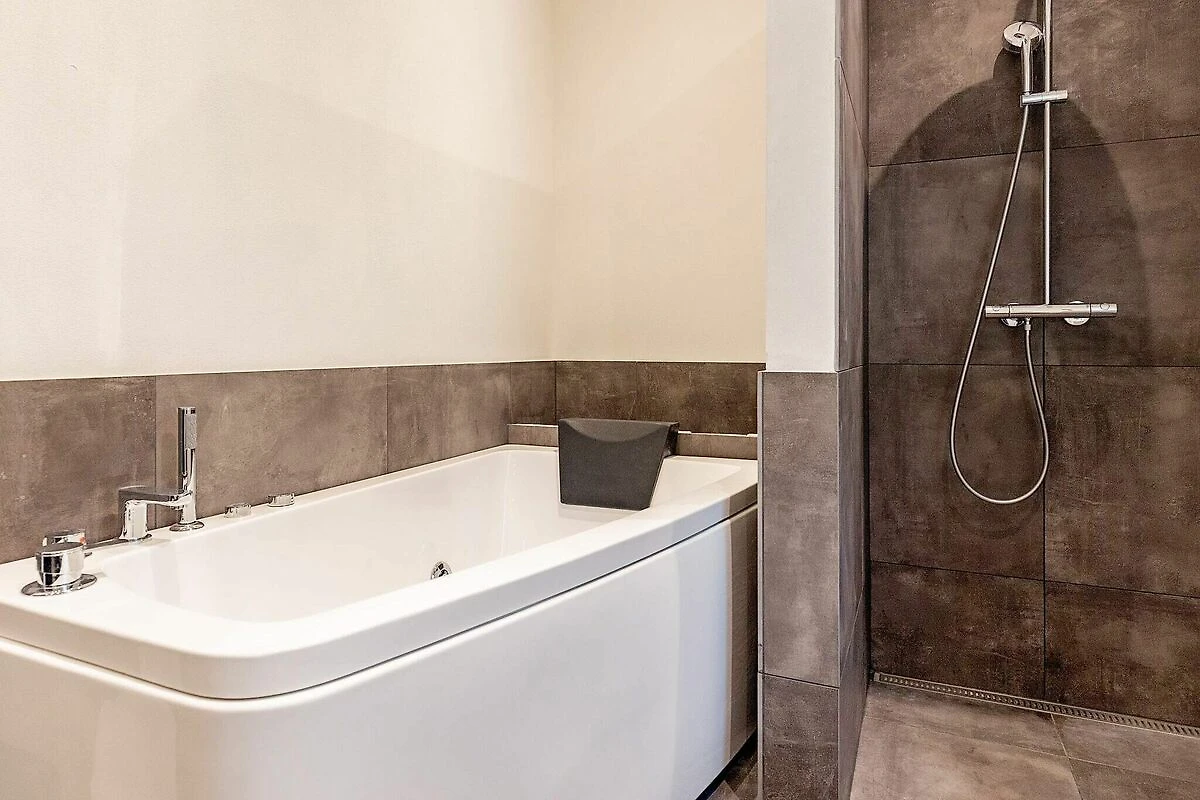 Offene Küche(Kochherd(elektrisch), Dunstabzugshaube, Mikrowelle, Spülmaschine, Kühl-/Gefrierkombination, Waschmaschine), Wohn-/Schlafzimmer(TV(Antenne), Chromecast), Schlafzimmer(Doppelbett), Schlafzimmer(Doppelbett), Schlafzimmer(Doppelbett), Badezimmer(Badewanne oder Dusche, Waschbecken, Toilette), Badezimmer(Waschbecken, Dusche, Toilette), Kaffeemaschine, Trockner, Whirlwanne(im Innenbereich, 2 Personen), Heizung(elektrisch), Terrasse, Terrasse(überdacht), Grill, Luft-Luft-Wärmepumpe
