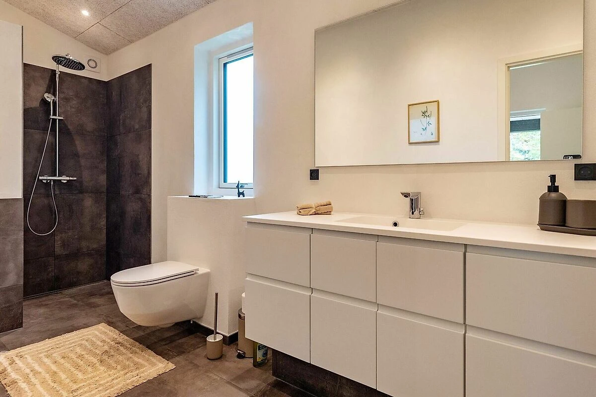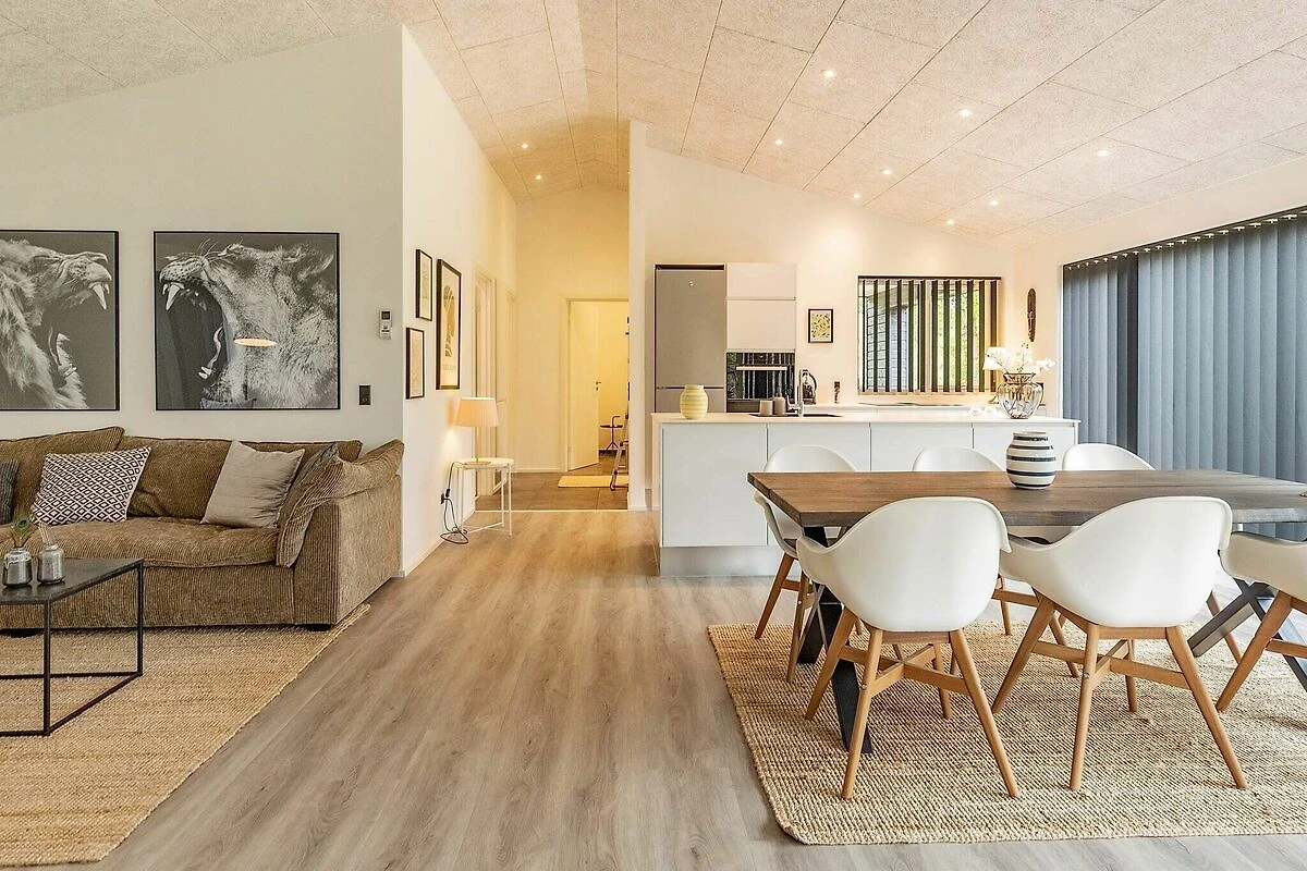 Dieses 2022 neu erbaute Ferienhaus mit Whirlpool liegt schön abgeschirmt in landschaftlich reizvoller Umgebung, auf einem weitläufigen Naturgrundstück nur 600 m vom Meer und etwa 400 m von Skallerup Klit entfernt. Ganz in der Nähe, nur wenige hundert Meter entfernt, findet man zudem ein großes Feriencenter mit diversen Aktivitätsangeboten. Das Ferienhaus ist innen hell und freundlich eingerichtet und im Außenbereich steht sowohl eine offene als auch eine überdachte Terrassenfläche bereit, auf der Sie Gelegenheit haben, sich zu entspannen, in der Sonne zu liegen oder den Grillabend zu verbringen. Hier findet man, je nach Vorliebe, Sonne pur oder kühlenden Schatten. Die Küche ist offen in den großen Wohn- und Essbereich integriert, der viel Platz für das Familienleben bietet. Außerdem stehen im Haus drei Schlafzimmer und zwei Bäder mit Dusche zur Verfügung, ein Bad zudem mit Whirlwanne für erholsame Stunden. Bitte nicht auf der Rasenfläche parken. Keine Vermietung an Jugendgruppen erwünscht!Kurz vor Ihrem Ankunftsdatum kann eine rückzahlbare Kaution erhoben werden. Die Kaution stellt sicher, dass Ihr Aufenthalt reibungslos verläuft, und deckt eventuelle Zusatzleistungen oder Verbrauchskosten ab.Diese Kaution deckt den Verbrauch von Nebenkosten während Ihres Aufenthalts sowie zusätzliche in Anspruch genommene Leistungen ab.Der endgültige Betrag wird anhand der tatsächlichen Zählerstände und Nutzung zusätzlicher Services angepasst. Ein etwaiger Restbetrag wird Ihnen innerhalb von 21 Tagen nach dem Check-out zurückerstattet.Die Kaution dient lediglich als Vorauszahlung für Leistungen, die Sie ohnehin bezahlen würden, und ermöglicht einen reibungslosen Ablauf Ihres Aufenthalts und Check-outs.