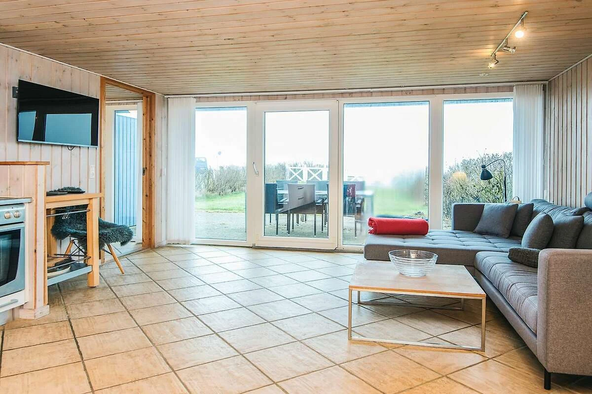 , Aufenthaltsraum(Doppelklappbett ), offene Küche(Kochherd(elektrisch), Dunstabzugshaube, Kaffeemaschine, Spülmaschine, Kühlschrank, Tiefkühlschrank(60-99L)), Wohn-/Schlafzimmer(TV(Satellit, Deutsch Fernsehsender, dänische Fernsehsender), Radio), Schlafzimmer(Doppelbett), Schlafzimmer(Doppelbett), Schlafzimmer(Doppelbett), Schlafzimmer(Einzelbett), Badezimmer(Fußbodenheizung)(Badewanne oder Dusche, Waschbecken, Toilette, Waschmaschine), Badezimmer(Fußbodenheizung)(Dusche), Whirlwanne(im Innenbereich, erwärmt), Sauna(im Innenbereich, erwärmt), Heizung(elektrisch), Terrasse(überdacht, 10 m2), Fischreinigungstisch, Luft-Luft-Wärmepumpe