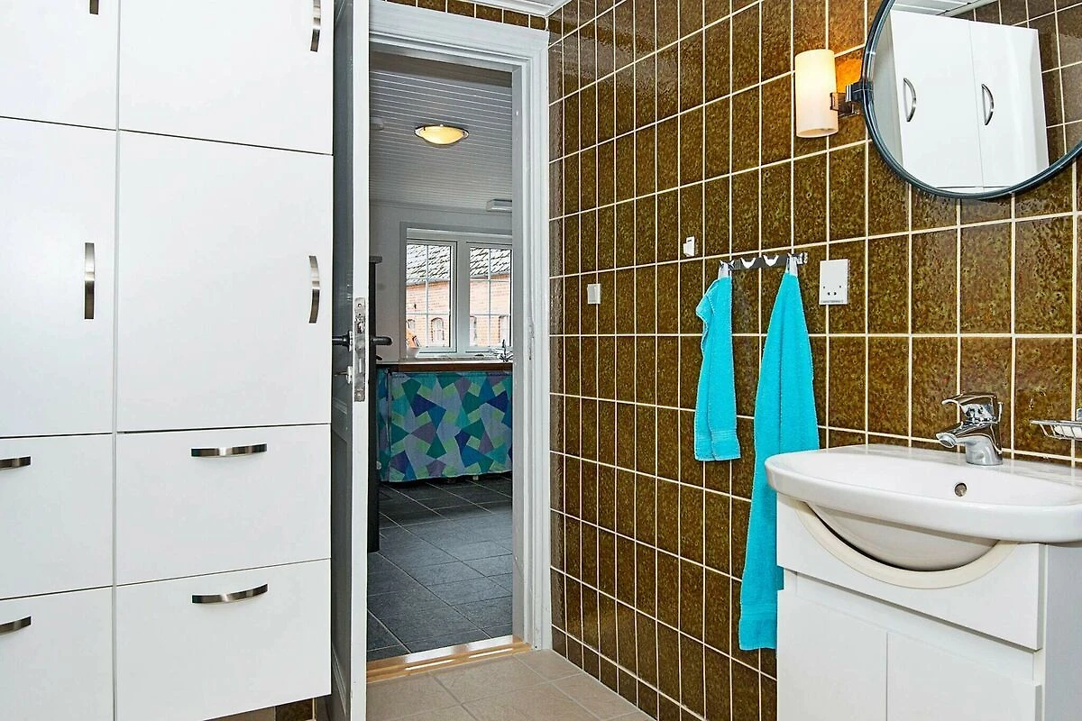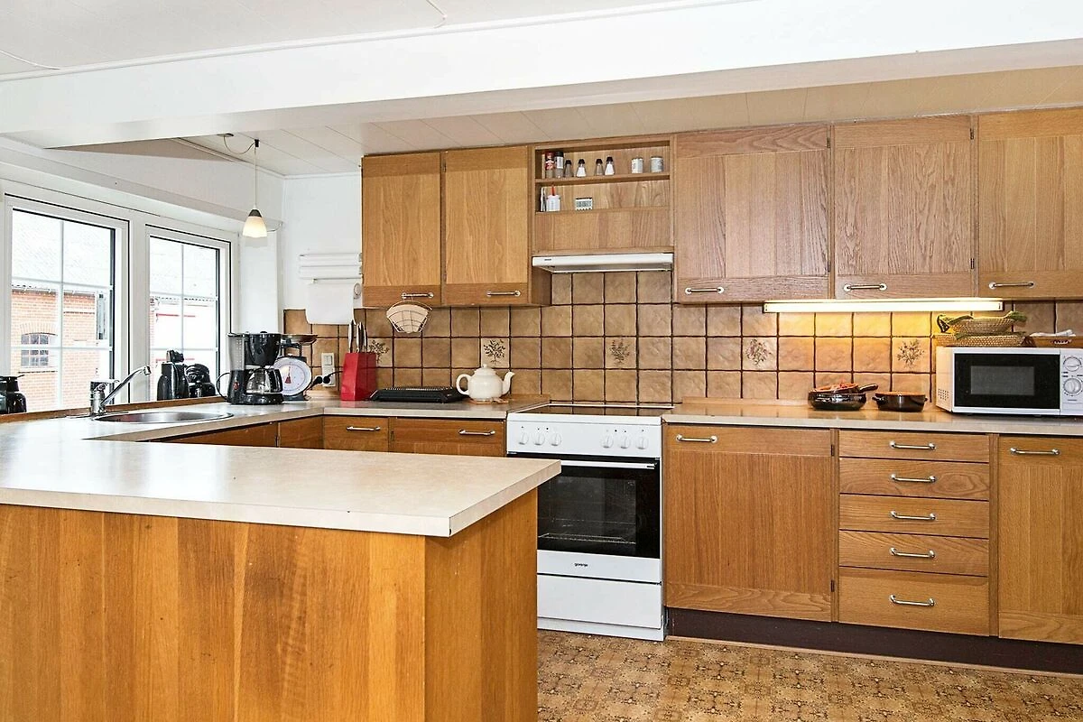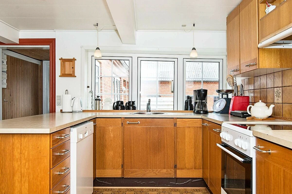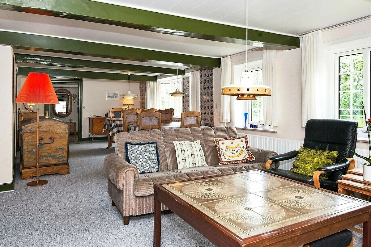 , offene Küche(Kochherd(elektrisch), Dunstabzugshaube, Kaffeemaschine, Mikrowelle, Spülmaschine, Kühlschrank, Tiefkühlschrank(100-139L)), Wohn-/Schlafzimmer(TV(Kabel, Deutsch Fernsehsender, dänische Fernsehsender), Radio, Hochstuhl), Schlafzimmer(Doppelbett), Schlafzimmer(Doppelbett), Schlafzimmer(2x Einzelbett), Schlafzimmer(2x Einzelbett), Badezimmer(Fußbodenheizung)(Trockner, Badewanne oder Dusche, Waschbecken, Toilette, Waschmaschine), Badezimmer(Fußbodenheizung)(Badewanne oder Dusche, Waschbecken, Toilette), Heizung(Zentral), Terrasse, Grill