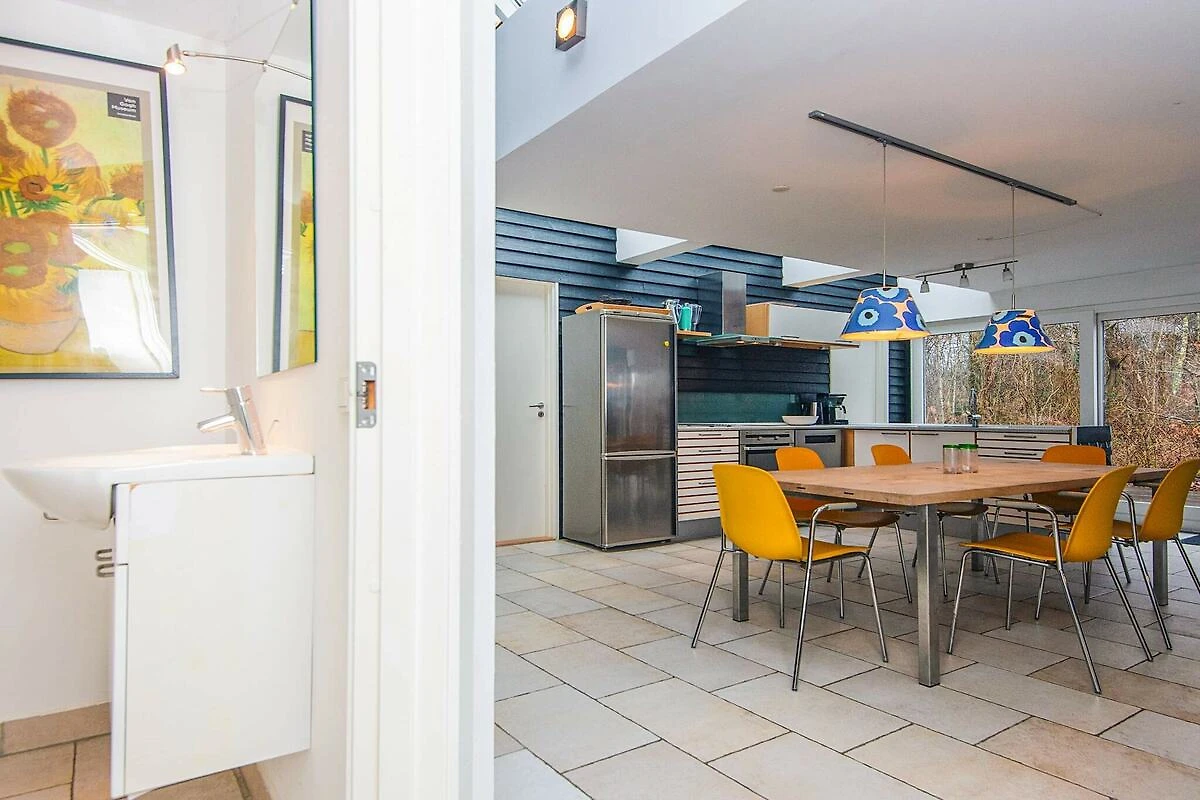 Ansprechendes Ferienhaus mit vielen spannenden Details. Die Oberlichtfenster sorgen überall im Haus für einen optimalen Lichteinfall. Die Küche des Hauses fungiert als natürlicher Versammlungsort für die ganze Familie.  Das Ferienhaus liegt in einer Sackgasse und hat eine gr. Terrasse. Ca. 5 Gehminuten zu einer der schönsten Badestrände Dänemarks.Kurz vor Ihrem Ankunftsdatum kann eine rückzahlbare Kaution erhoben werden. Die Kaution stellt sicher, dass Ihr Aufenthalt reibungslos verläuft, und deckt eventuelle Zusatzleistungen oder Verbrauchskosten ab.Diese Kaution deckt den Verbrauch von Nebenkosten während Ihres Aufenthalts sowie zusätzliche in Anspruch genommene Leistungen ab.Der endgültige Betrag wird anhand der tatsächlichen Zählerstände und Nutzung zusätzlicher Services angepasst. Ein etwaiger Restbetrag wird Ihnen innerhalb von 21 Tagen nach dem Check-out zurückerstattet.Die Kaution dient lediglich als Vorauszahlung für Leistungen, die Sie ohnehin bezahlen würden, und ermöglicht einen reibungslosen Ablauf Ihres Aufenthalts und Check-outs.