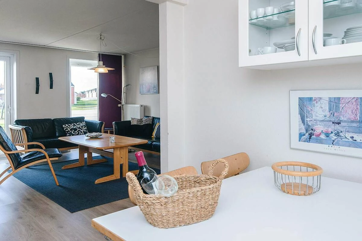 , offene Küche(Kochherd(elektrisch), Dunstabzugshaube, Kaffeemaschine, Mikrowelle, Spülmaschine, Kühlschrank(+ Gefrierfach), Waschmaschine), Wohn-/Schlafzimmer(TV(Kabel, Deutsch Fernsehsender, dänische Fernsehsender), DVD-Spieler, CD-Spieler, Stereoanlage, Hochstuhl), Schlafzimmer(Doppelbett), Schlafzimmer(2x Etagenbett), Schlafzimmer(2x Einzelbett, Babybett), Badezimmer(Badewanne oder Dusche, Waschbecken, Toilette), Babybett, Sauna(Gemeinschaftliche Nutzung mit anderen Gästen, im Innenbereich), Terrasse, Pool(Gemeinschaftliche Nutzung mit anderen Gästen, im Innenbereich), Pool(Gemeinschaftliche Nutzung mit anderen Gästen, im Garten), Tischtennisplatte, Tischfußball, Air-Hockey, Billard, Hochstuhl