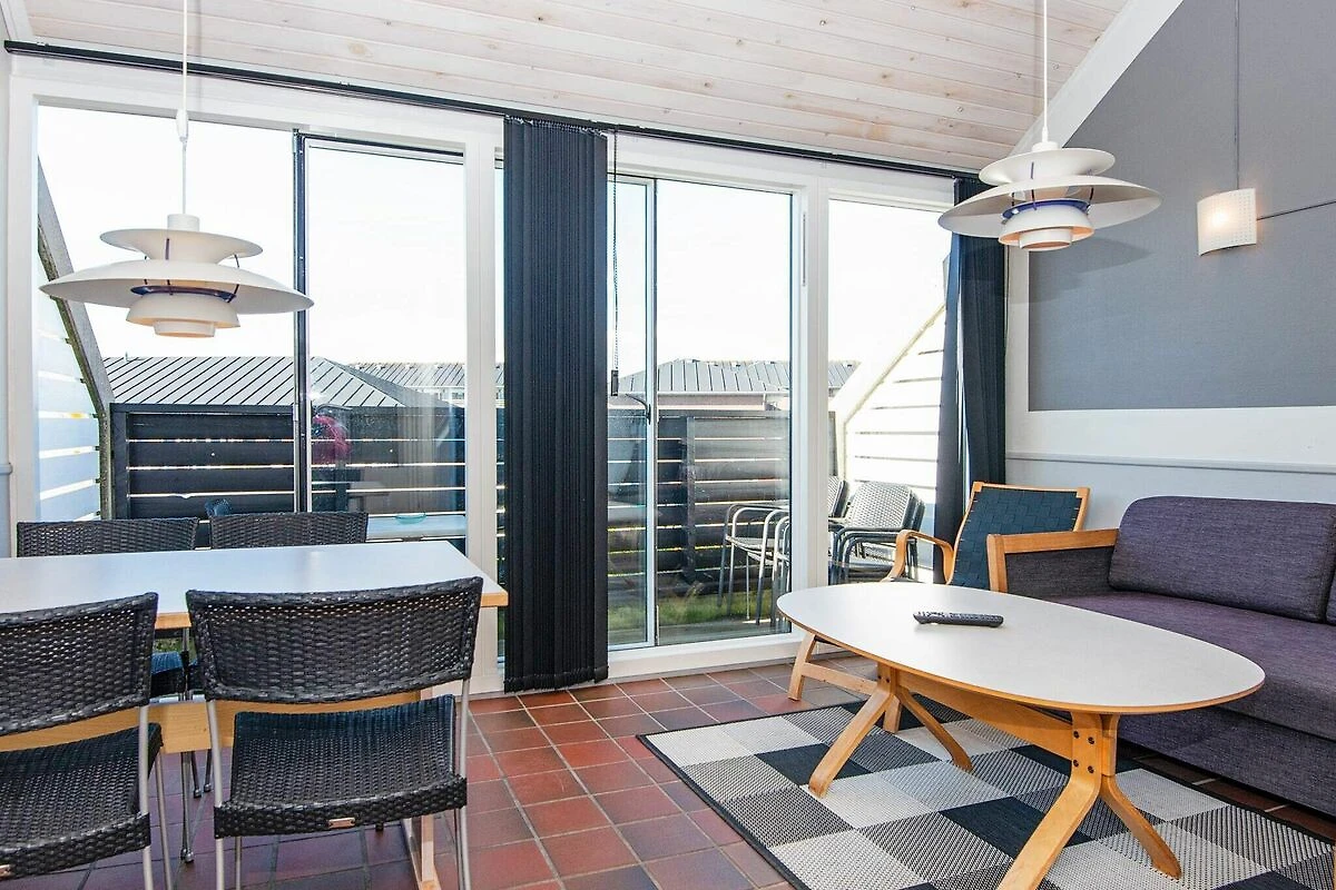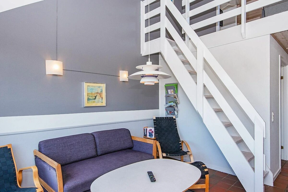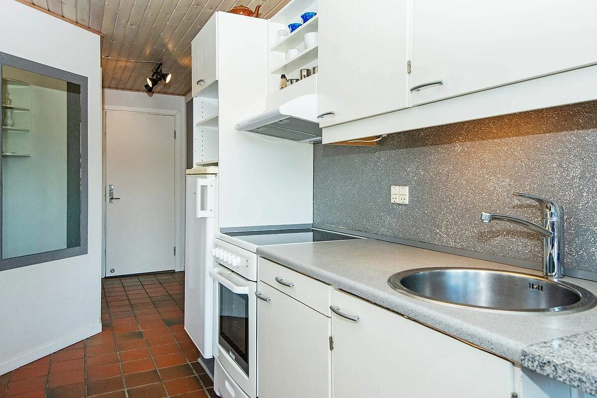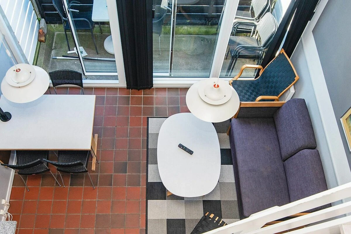 , Wohnzimmer(Doppelbett), offene Küche(Kochherd(elektrisch), Dunstabzugshaube, Kaffeemaschine, Kühlschrank(+ Gefrierfach)), Wohn-/Schlafzimmer(2x Einzelklappbett , TV(Kabel, Deutsch Fernsehsender, dänische Fernsehsender)), Schlafzimmer(Doppelbett), Badezimmer(Fußbodenheizung)(Badewanne oder Dusche, Waschbecken, Toilette), Balkon, Heizung(elektrisch)